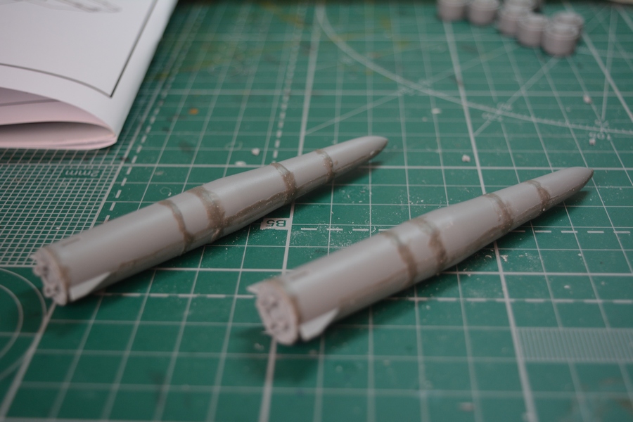 Склеил и зашпаклевал ракеты. Ракеты должны быть гладкие, на них не должно быть никакой расшивки.
