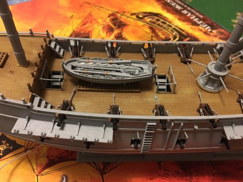 - вернуть на место отклеившиеся с палубы пушки и фонарь;