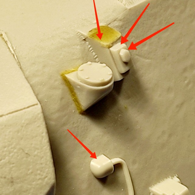 Кое-где потребуется корректировка мелочей, появившихся на модели благодаря особенностям литейной технологии, например, головки осей на одном из люков и кожушки над выводами электрокабелей дымовушек: