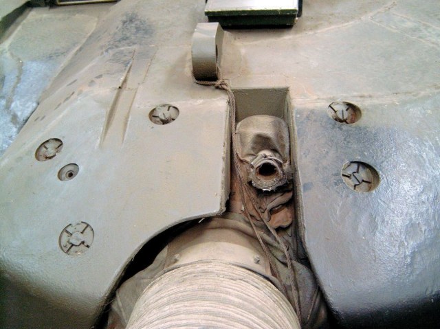 - на фотографиях музейного танка моноблок прицела окрашен в красно-коричневый цвет, то есть первоначальная схема окраски была изменена; к тому же дульная часть ствола с кожухом MRS зачем-то открашена чьими-то шаловливыми ручонками в серо-синий цвет: