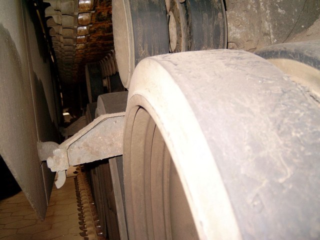 Увидев ЭТО, я поначалу подумал, что МЕНГовцы поехали кукухой и взяли за образец дебильную историю с отдельными, "как бы резиновыми", бандажами на древней Академовской Меркаве 2, их надо было клеить на катки, причем насколько я помню, почему-то только с внешней стороны, и более идиотского занятия трудно было придумать.