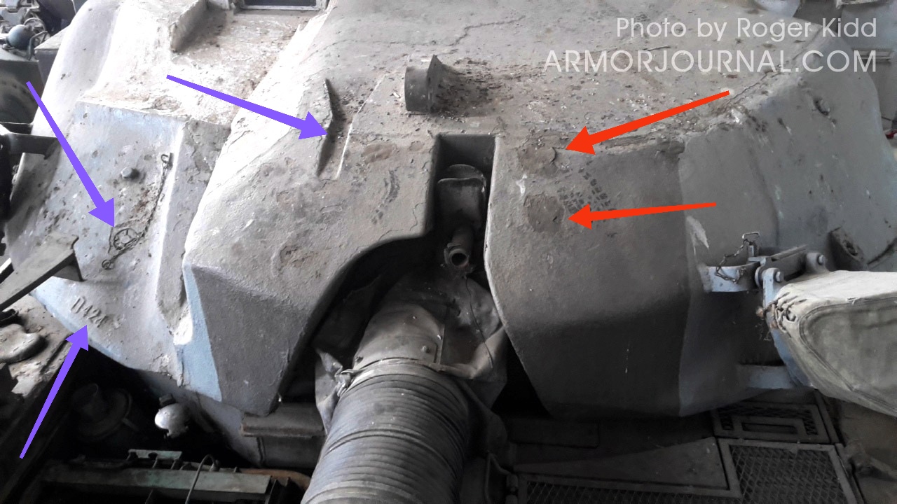 накладка хоть и литая, но внутри пустотелая, полости заполнены резиной вперемежку с элементами из конструкционной стали, и все это крепится на башне с помощью шпилек, концы которых и видны на фото. Также накладка обваривается по контуру, но сварные швы вряд ли являются основными несущими элементами, да это и видно по их толщине.