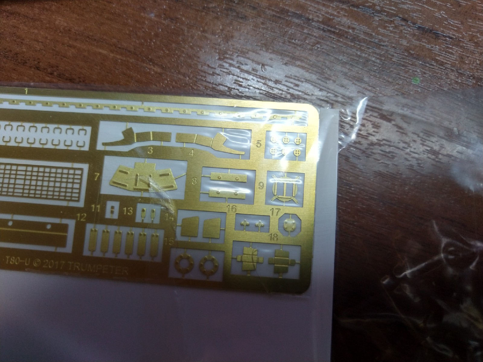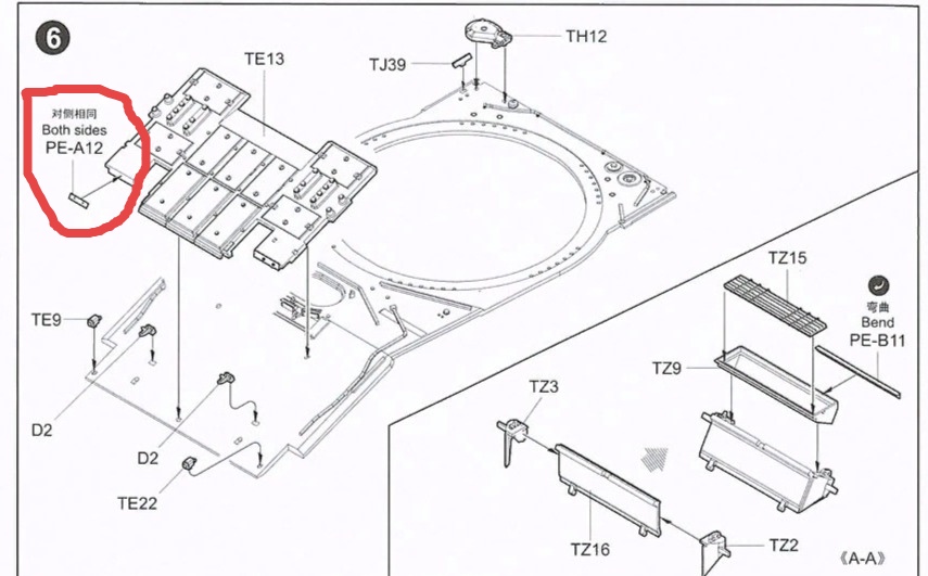 Всех приветствую. Столкнулся с такой проблемой при сборке набора 09525 Т-80У от фирмы Trumpeter. Дело в том что в инструкции на странице 7 указанно что на деталь TE-13 должны быть установлены две детали PE-A12. Только вот дело в том что это совсем другие детали которые не похожи на те что приводит инструкция, а те что похожи идут под обозначением PE-A8. Так вот, я правильно понимаю что в инструкции ошибка и нужно устанавливать детали PE-A8?