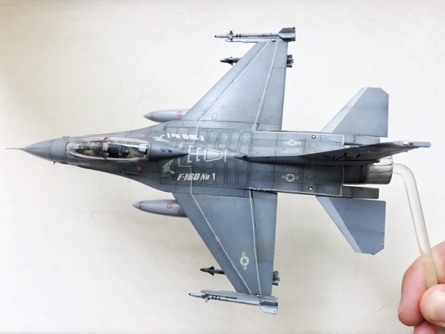 Я два дня потратил на наклеивание декалей. Не знаю кто как, но мне это занятие нравится до поры до времени. Потом начинает уже бесть. В итоге, начинаешь клеить криво. Вот и я под конец вечера самые большие декали с надписью F-160 с обоих боков наклеил криво. Еще и полосы порвались в двух местах.