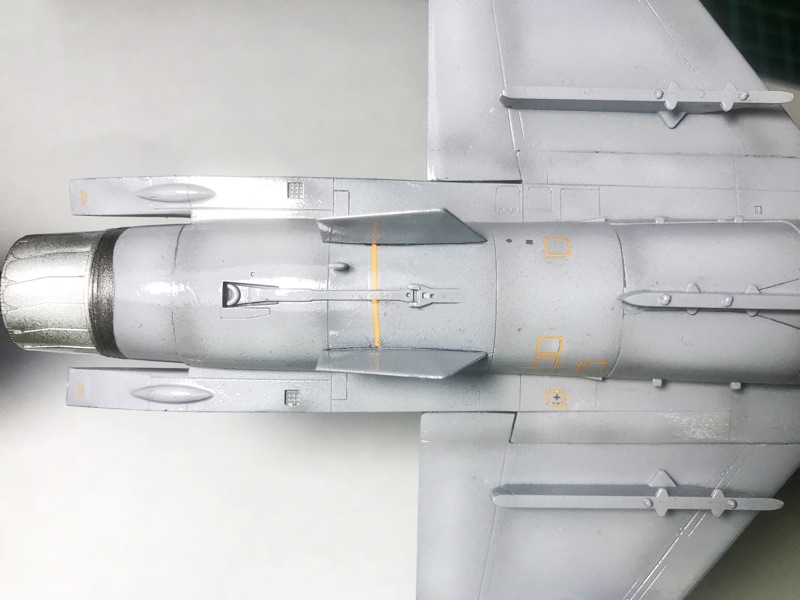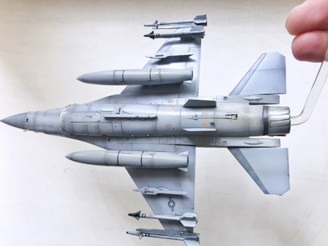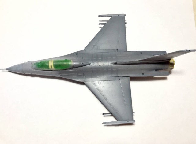 Я покрасил нижнюю часть самолета, предварительно замаскировав все, что можно. Если я все не закрою, то обязательно попаду краской. Проверено. Также покрасил вооружение. Все в цвет Н308. Снял немного видео процесса: