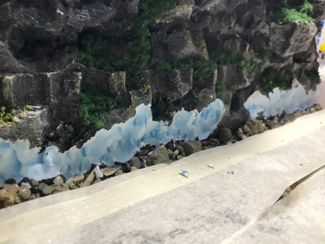 За дополнительную неделю сушки осоьо ричего не поменялось. В общем, решил не заморачиваться и просто подкрасить все белой краской. Ну а что, речка ж горная, пены много.