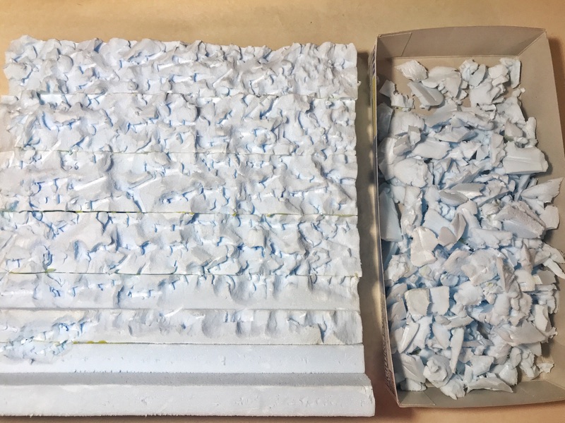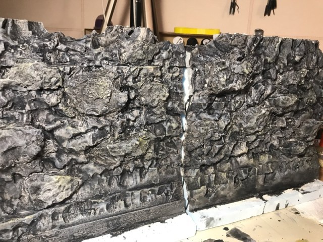 Теперь пришло время заняться скалами. Как вы помните, у меня после склейки пенопласта получились такие две стенки.