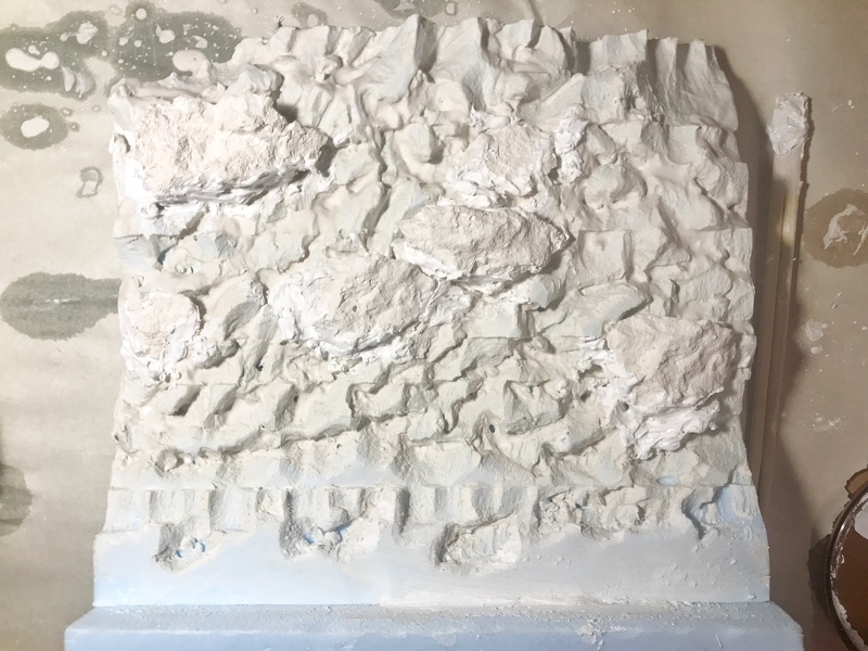 После этого покрыл жидко разведенным гипсом и приклеил изготовленные из моих форм кусочки скал.