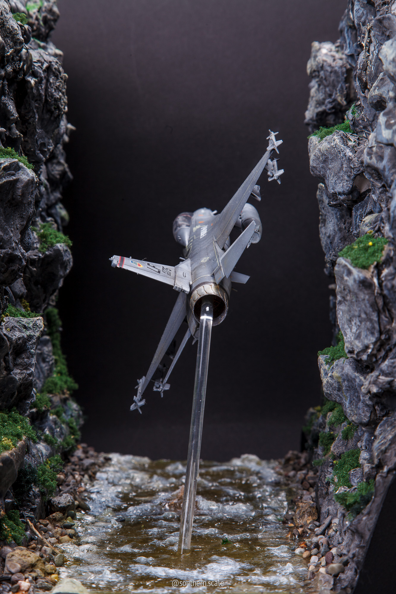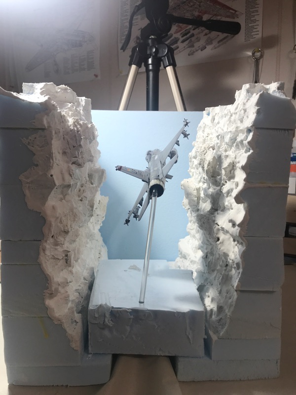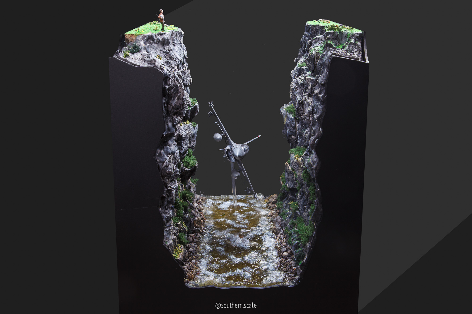 Но я не какой-то задрот, чтобы убиваться по этому поводу. Я подхожу к вопросу философски. Все равно это будет диорама и основной посыл работы — это эмоции движения самолета, а не его достоверноть и соответствие прототипу. Поэтому криво, так криво. Между скал это еще разглядеть их надо будет!