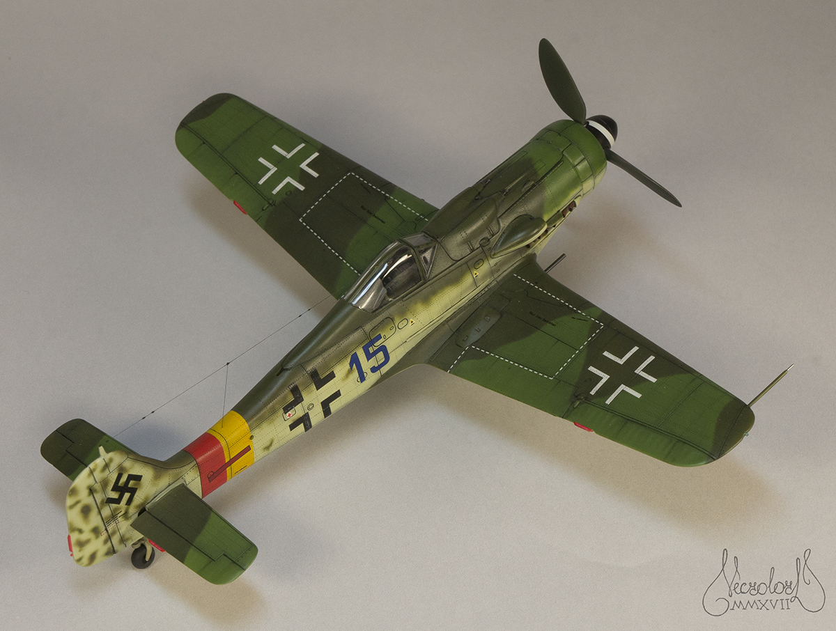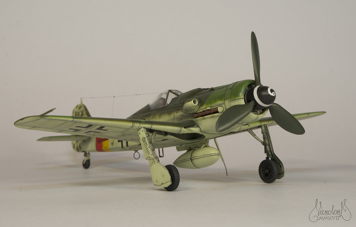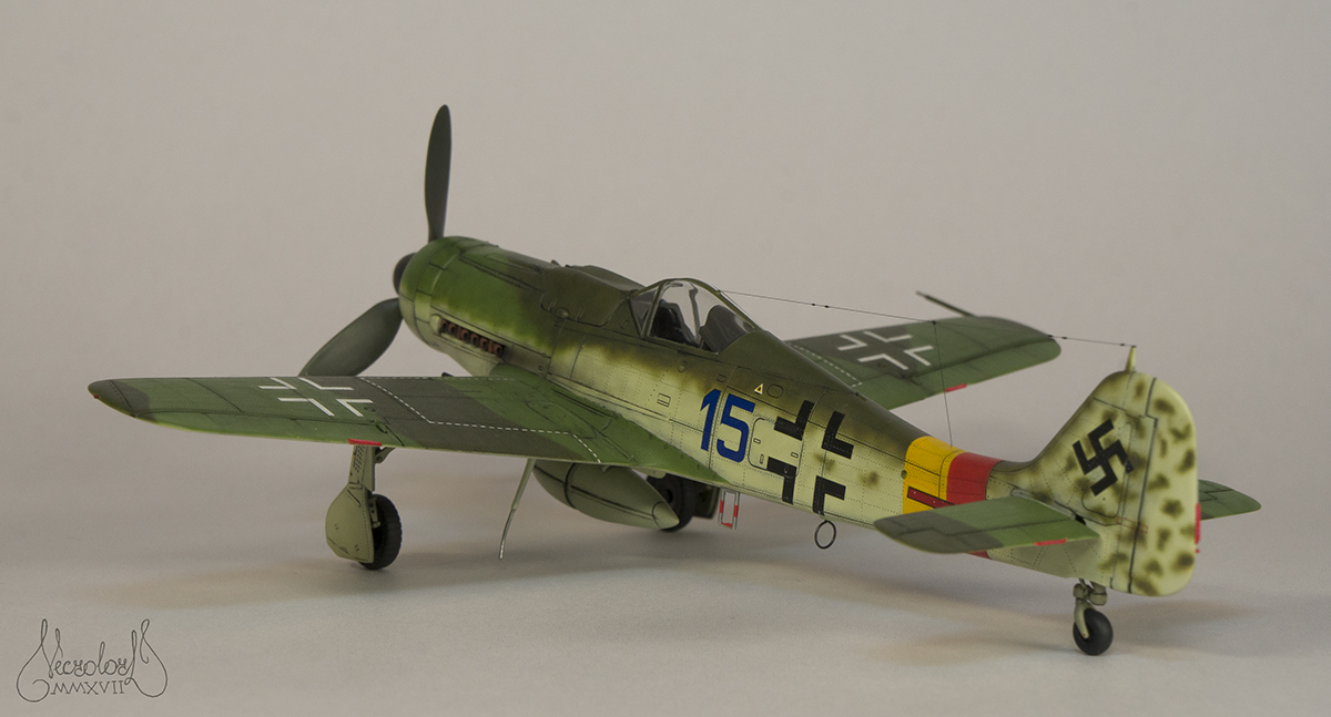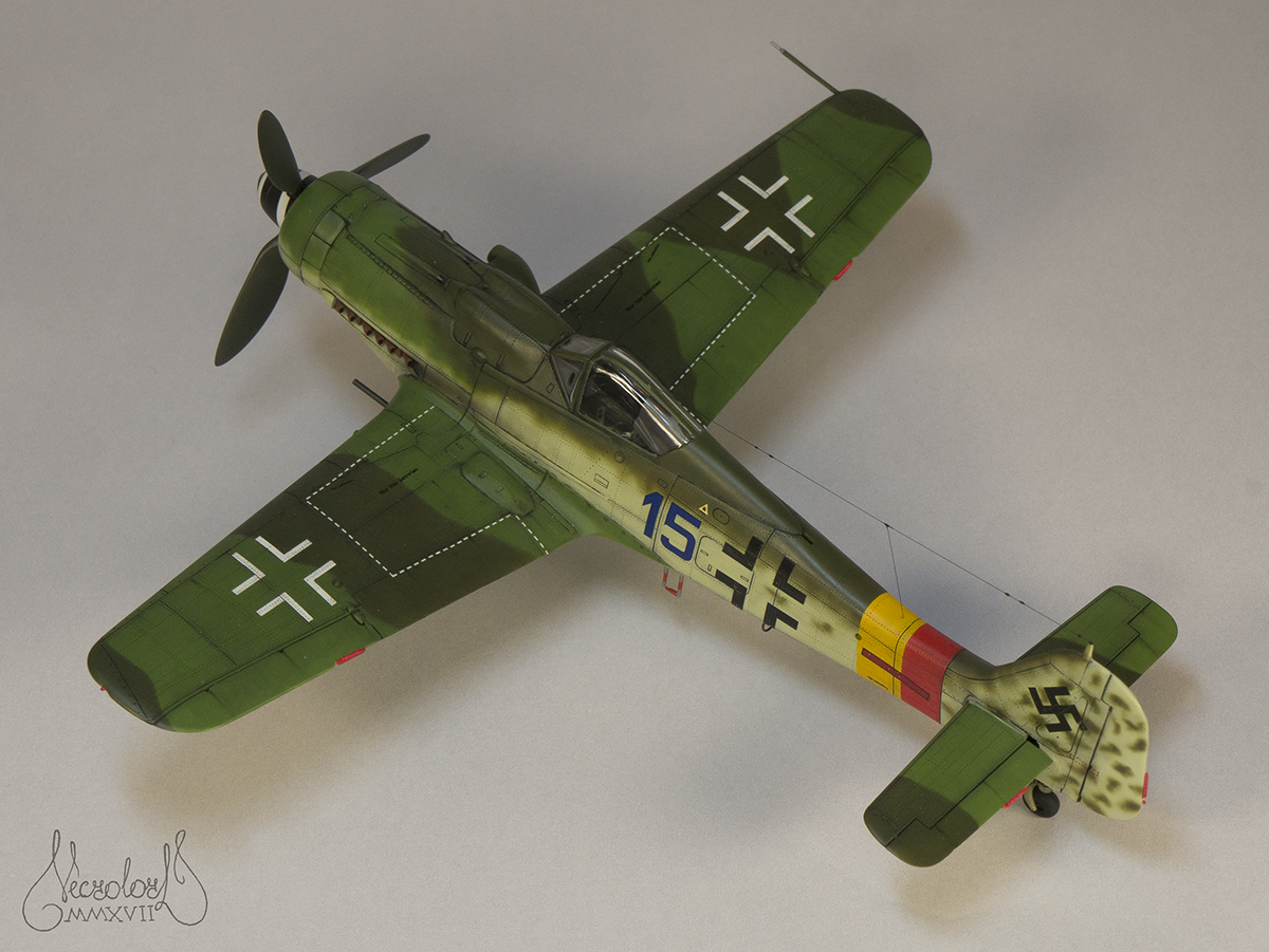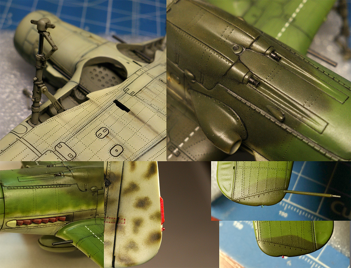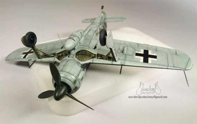 По работе коротко: белый грунт, прешейд, краски Мр Колор и Тамия, полироль для пола Футура, акцент колор от Тамии и их же пудры, пастельные мелки, стволы - полируемый металлик, хвостовой и крыльевые аэронавигационные огни точёные из цветных пластиков, полимерная нить. Пожалуй на этом всё, приятного просмотра!