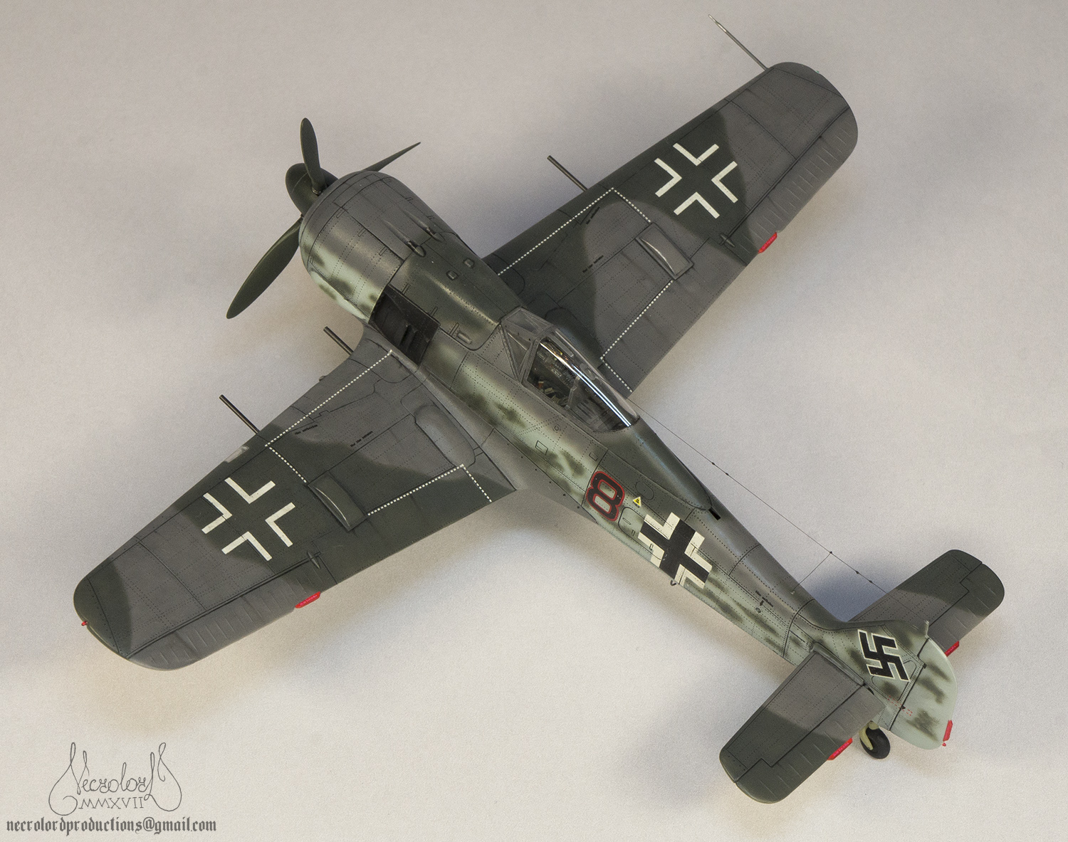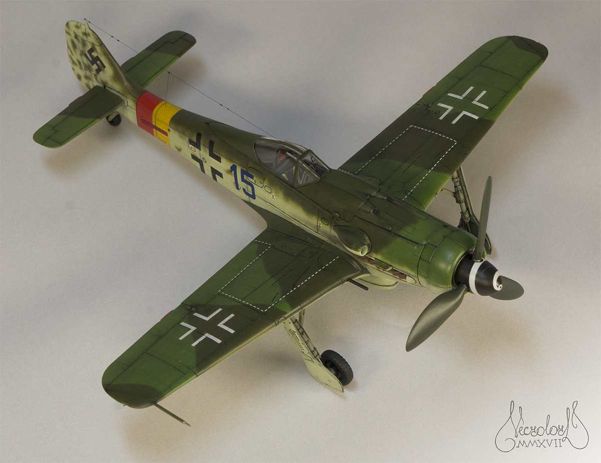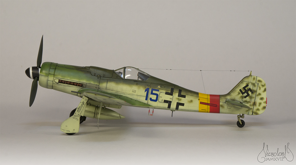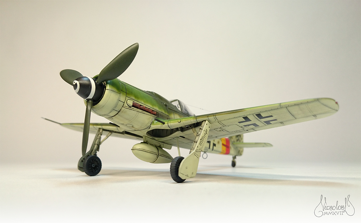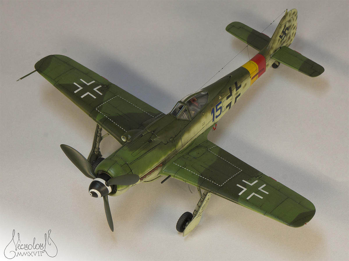 По работе коротко: белый грунт, прешейд, краски Мр Колор и Тамия, полироль для пола Футура, акцент колор от Тамии и их же пудры, пастельные мелки, стволы - полируемый металлик, хвостовой и крыльевые аэронавигационные огни точёные из цветных пластиков, полимерная нить. Пожалуй на этом всё, приятного просмотра!