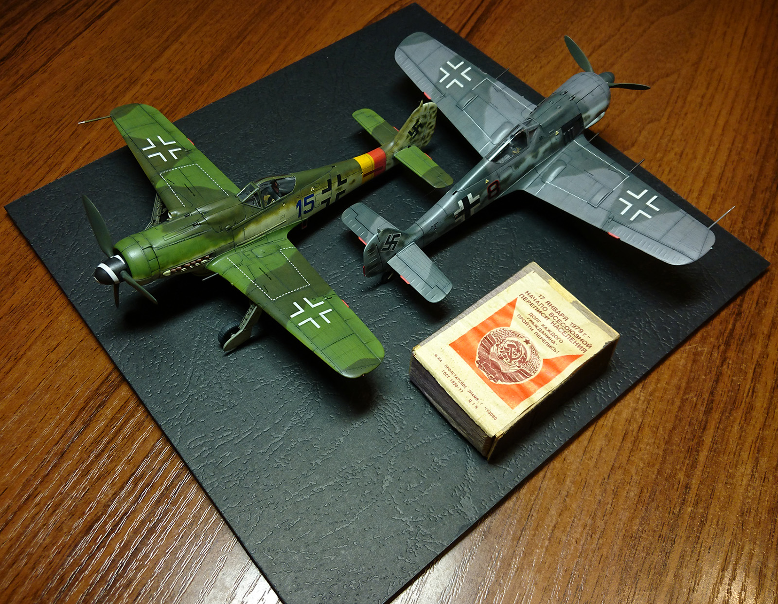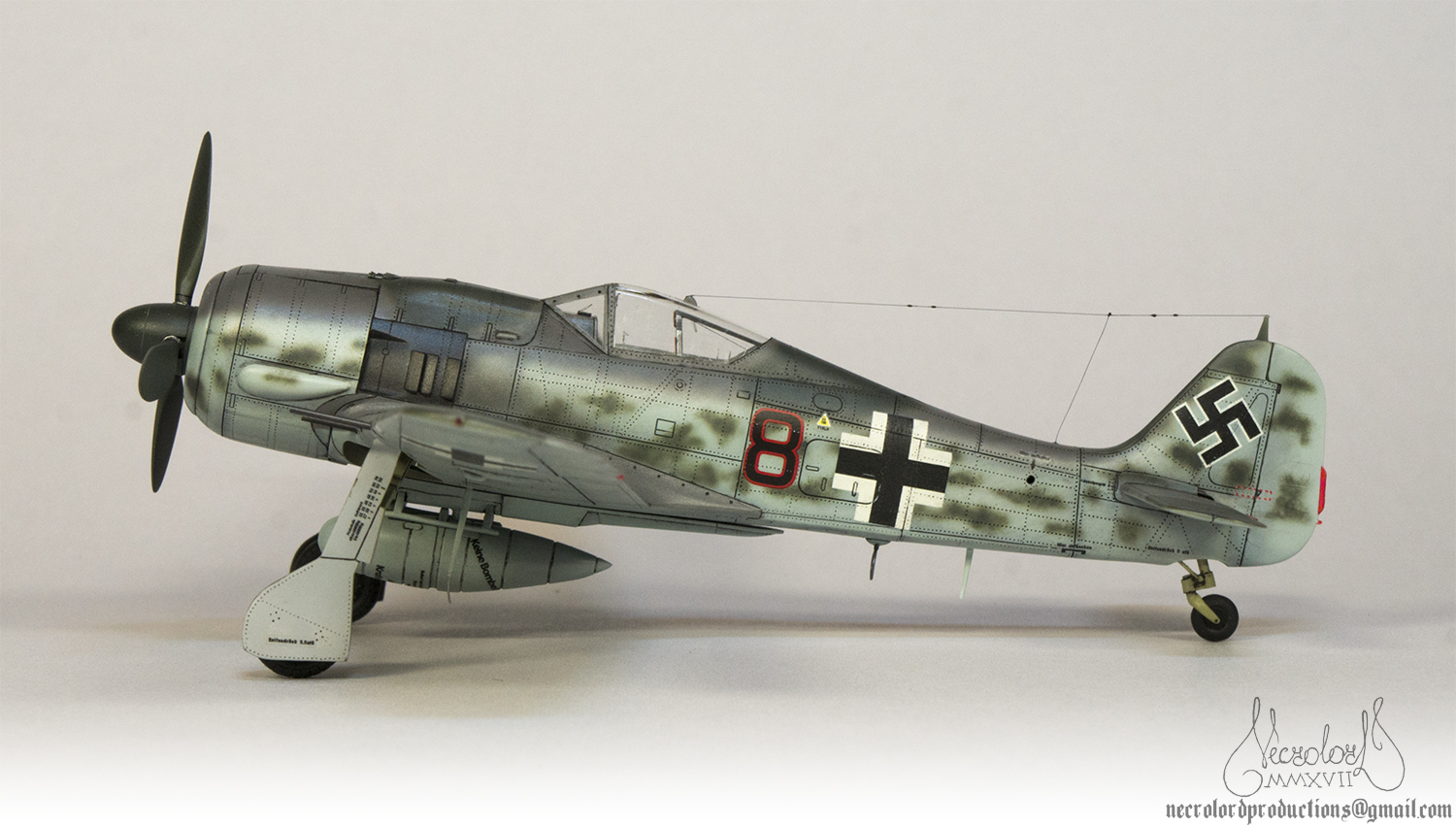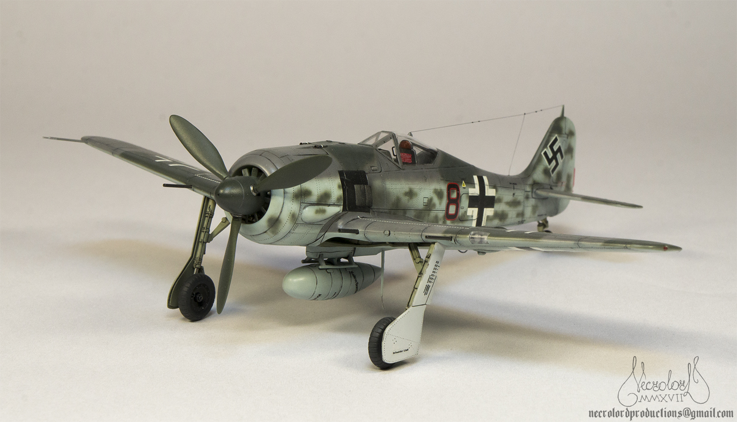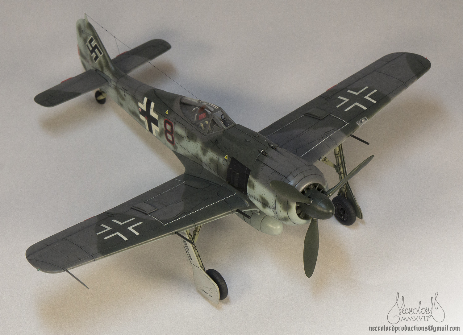 По работе коротко: белый грунт, прешейд, краски Мр Колор и Тамия, полироль для пола Футура, акцент колор от Тамии и их же пудры, пастельные мелки, стволы - полируемый металлик, хвостовой и крыльевые аэронавигационные огни точёные из цветных пластиков, полимерная нить. Пожалуй на этом всё, приятного просмотра!