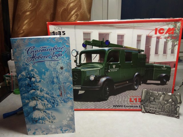 Встретил "почтового эльфа" от "дедушки" Афанасьева Алексея из златоглавой)) Огромное спасибо за подарок, съестные составляющие ожидают дегустации)) модельная часть также интересна, получилось так, что техники вермахта кроме грузовиков и полугусеничников не собирал, теперь разбавлю зелёные ряды))