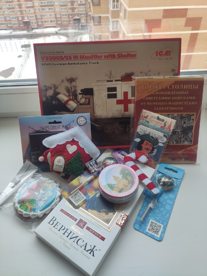 Наконец забрал подарок от дедушки Руслана из города Санкт-Петербург. Руслан огромное спасибо за доставленную радость, не успел открыть коробку, так половина сувениров сразу ушла на пробу)) с трудом собрал все для фото)) С маультиром угадали, давно смотрел на него, монетки пошли к своим юбилейным и не только товарищам, игрушки на ёлку, сладкое на стол, магнитное на холодильник)) Еще раз огроменное Спасибо))