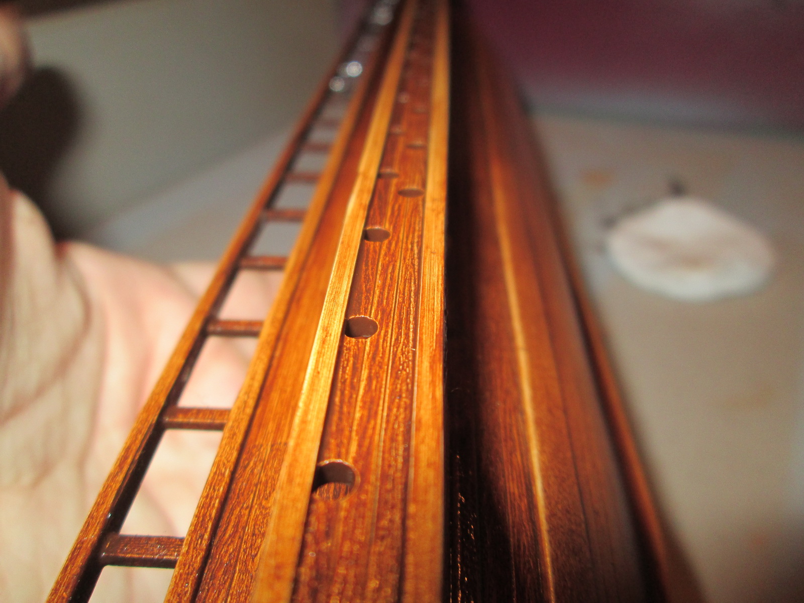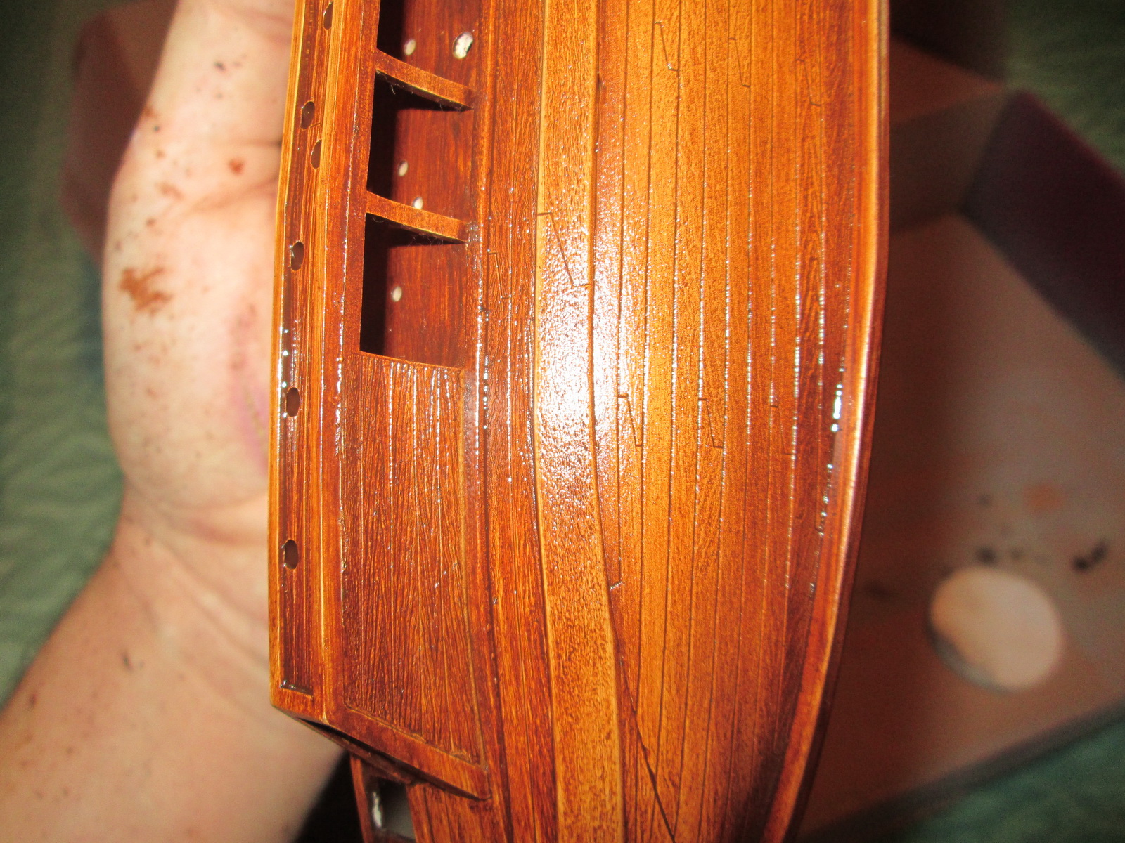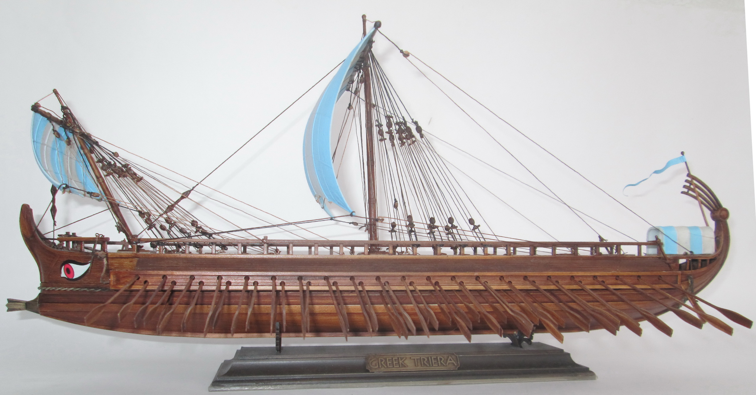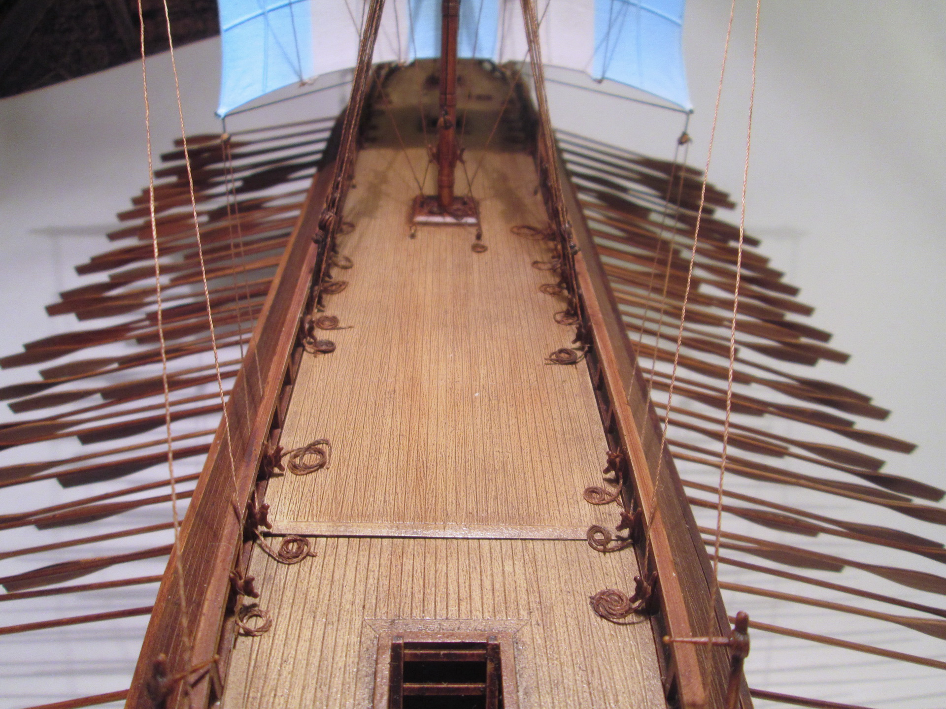 По сравнению с собранными ранее моделями парусников триера имеет прекрасную стыкуемость. По крайней мере, для стыковки бортов и днища не потребовалось клейкой ленты, резинок или прищепок, а затраты шпаклевки оказались минимальны.