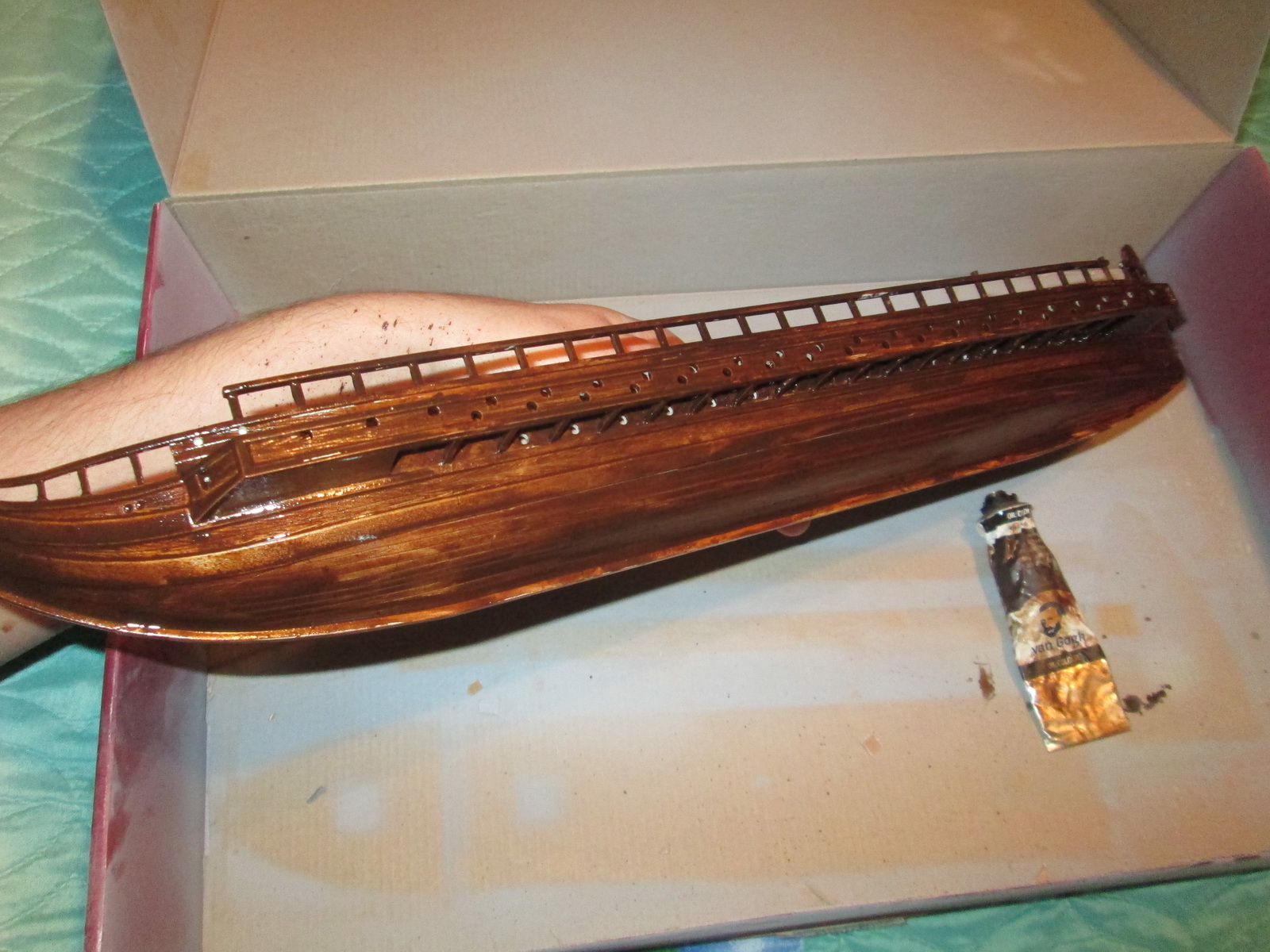 Палубу окрашивал точно так же, однако использую более разведенное масло.