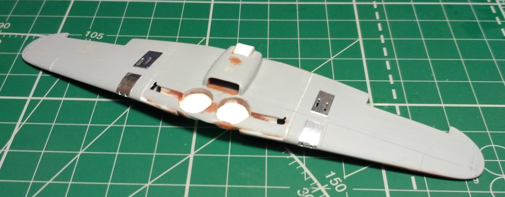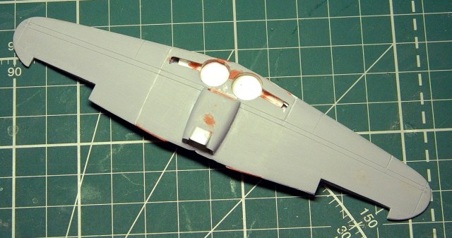 Закрыл ниши, собрал несущие поверхности, подшпаклевал, долго шкурил, начал резать обшивку... и спохватился - забыл совершенно про гильзовыбросные отверстия...