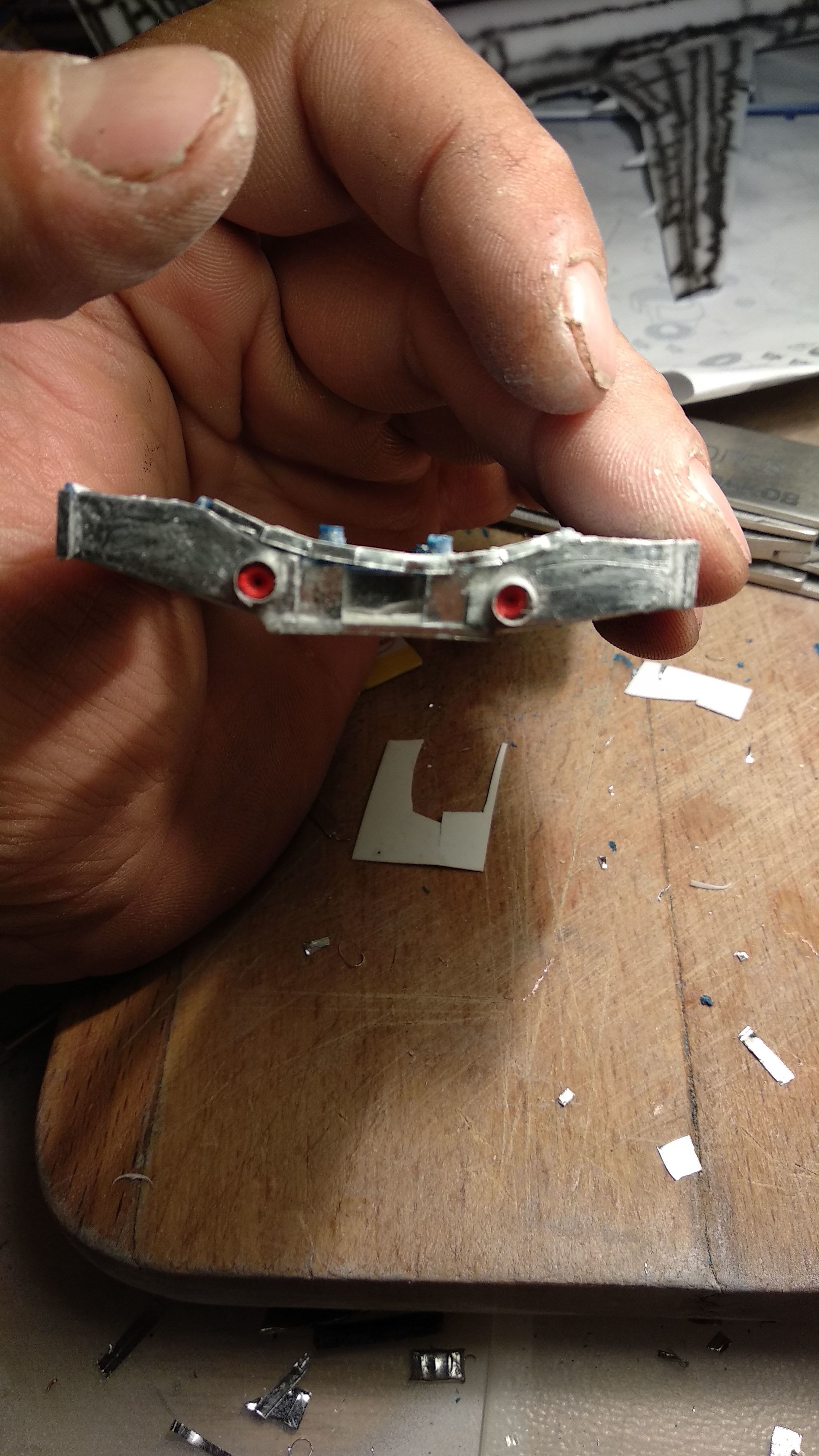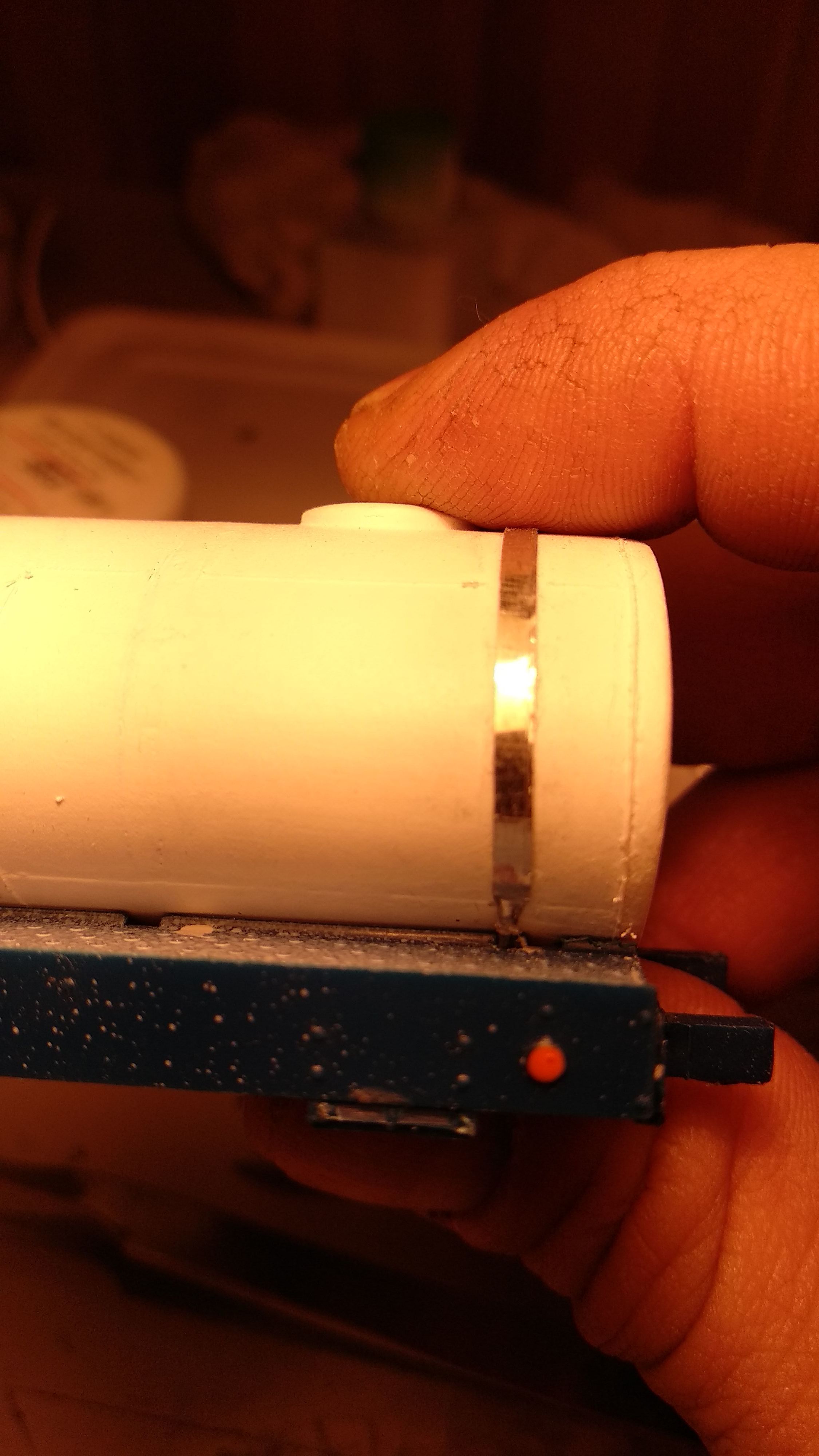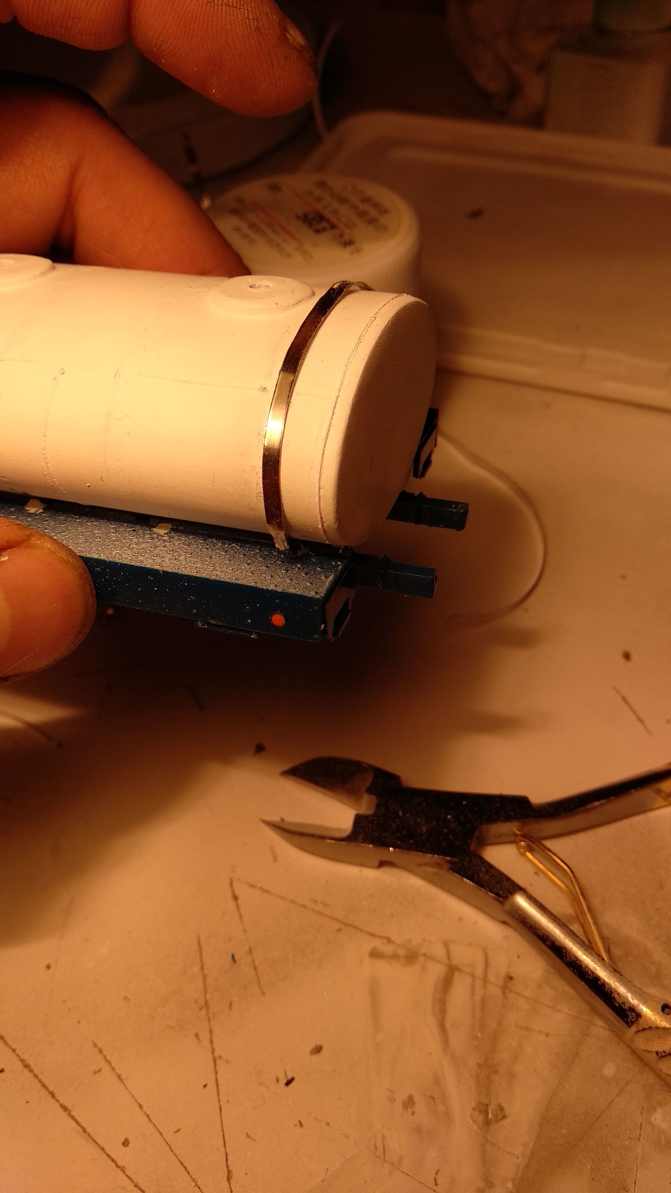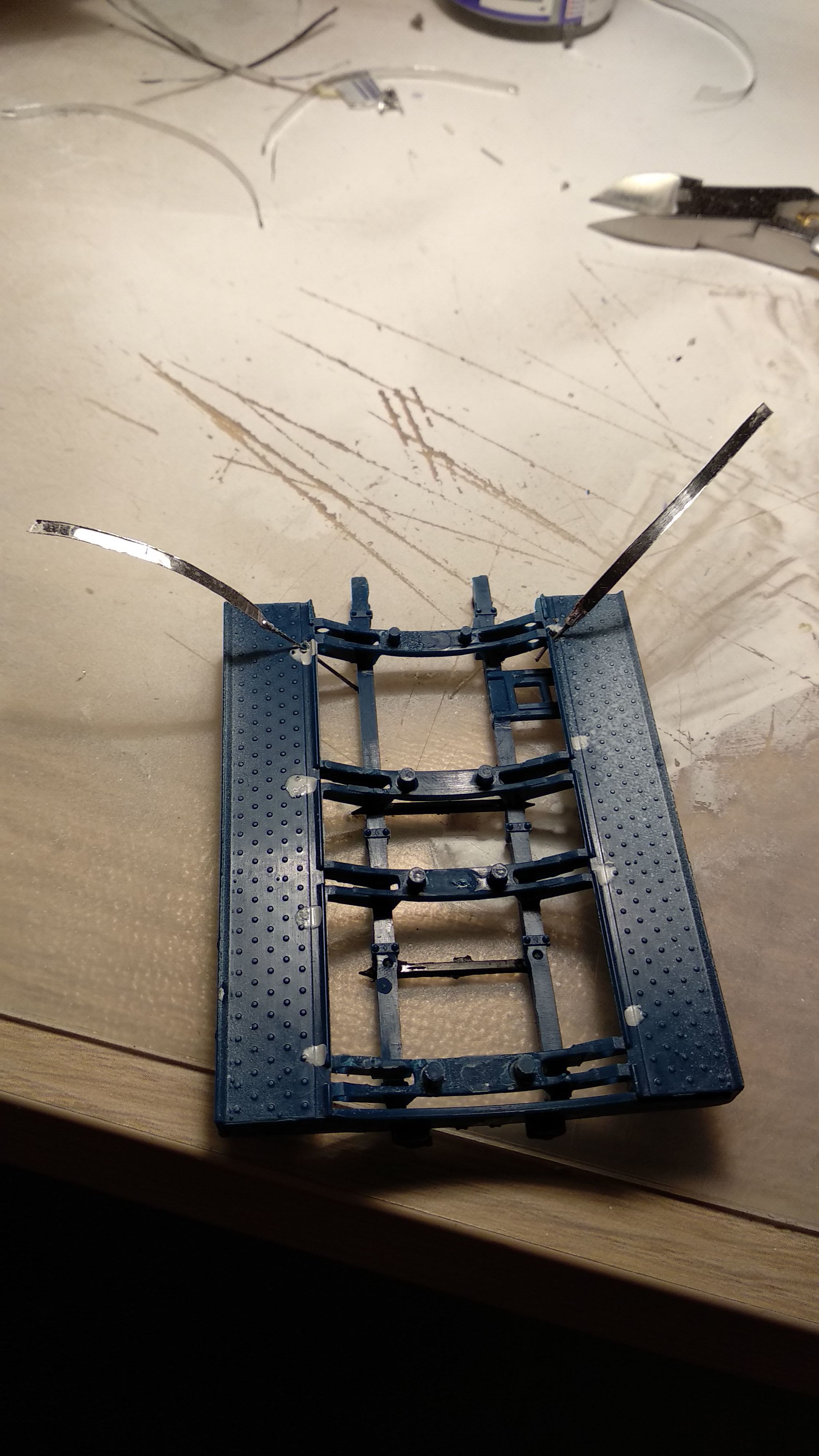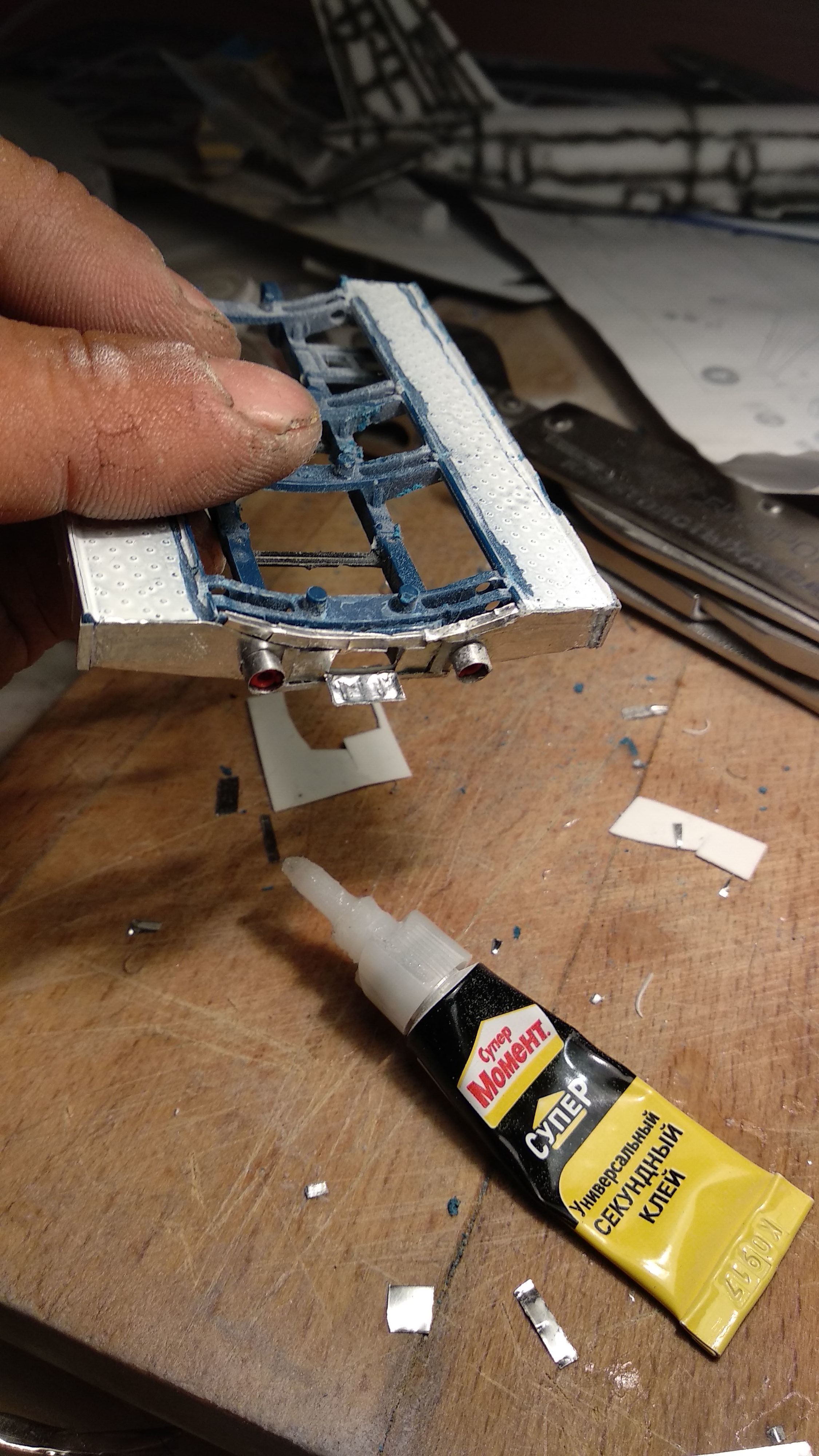 Я опять переделал хомуты, клей зачистил, выштамповки задрал специально, чтоб было видно, приступаю к монтажу поручней.