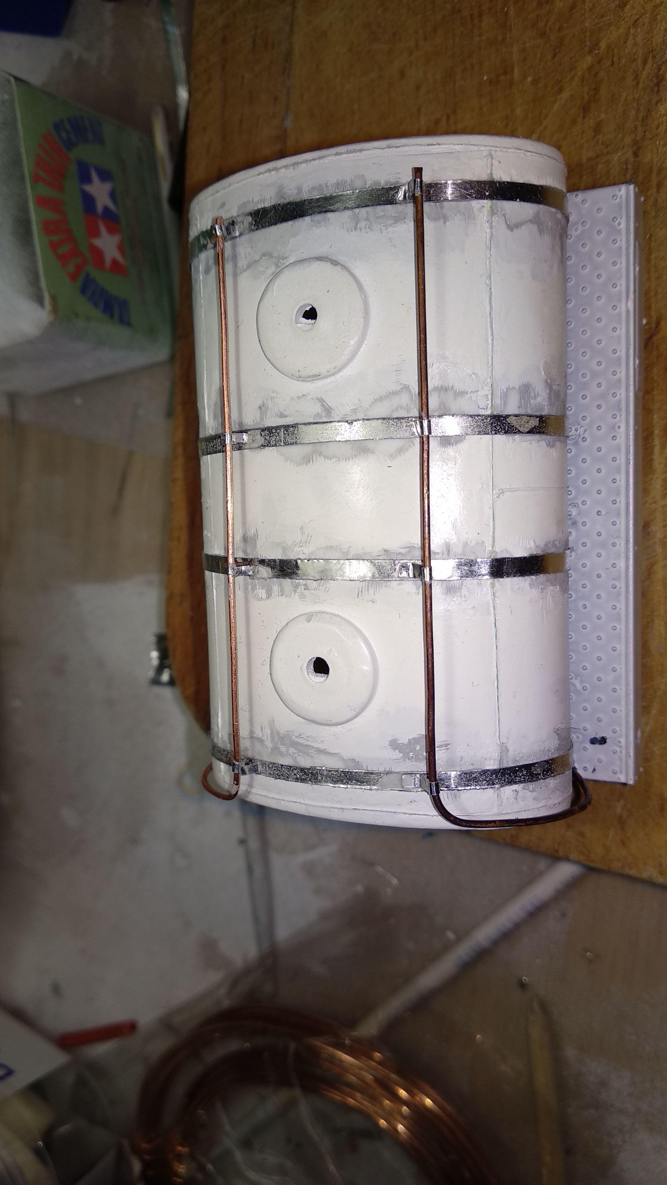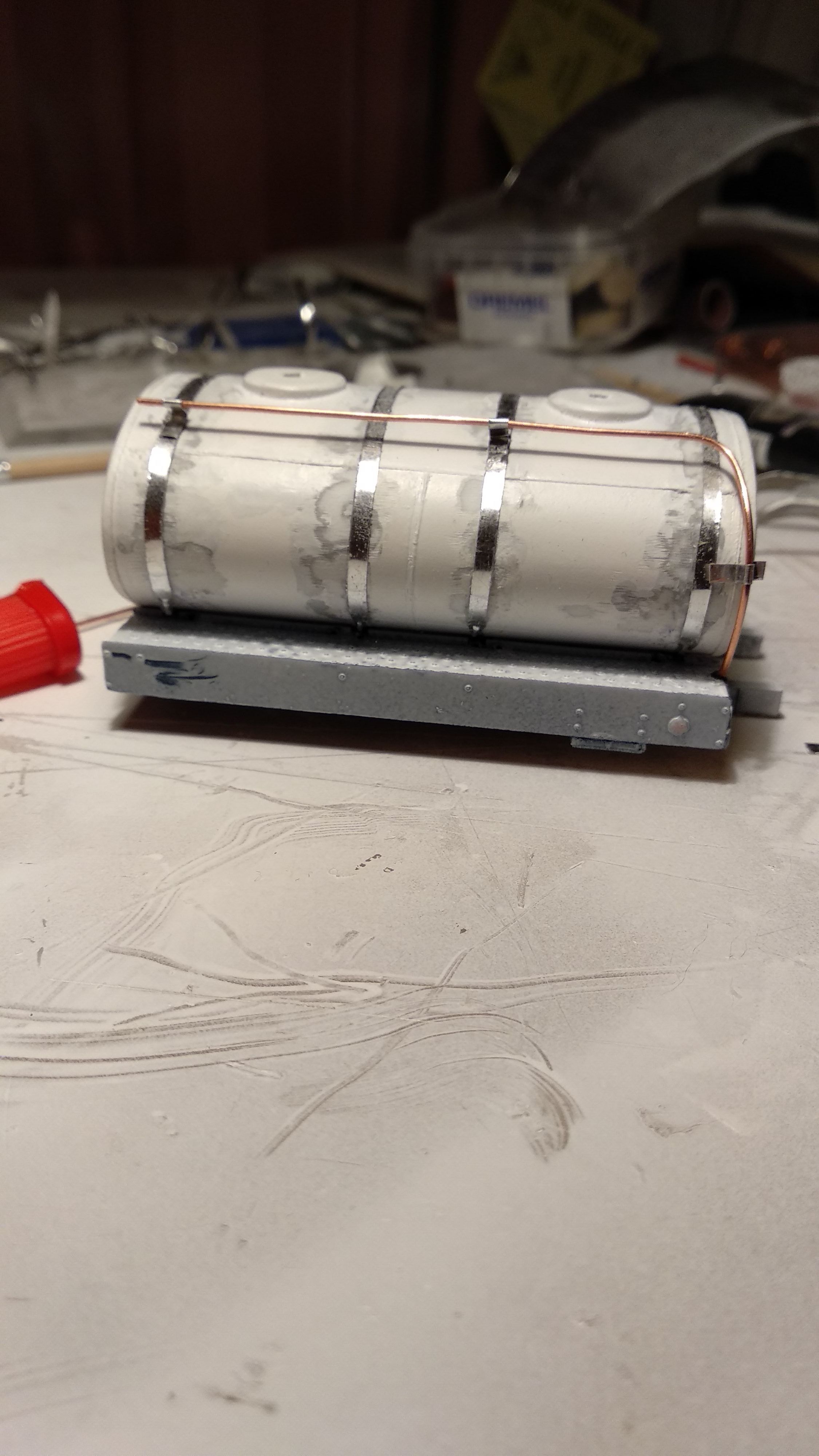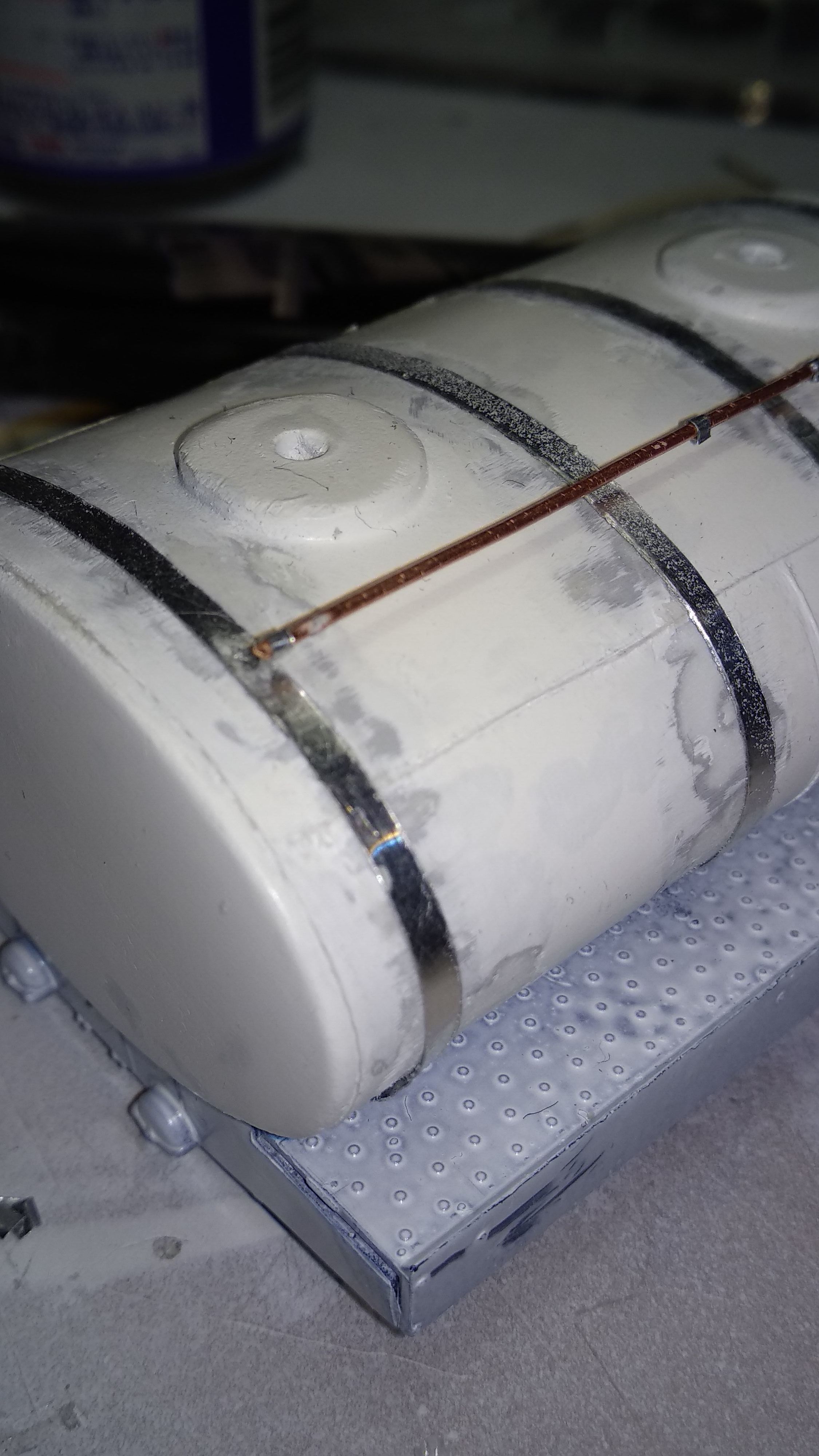 Доделал хомуты, прикинул на цистерну. Подгонка будет уже относительно подмостей. А параллельно с хомутами медитация.... грунтовка и шкурение)