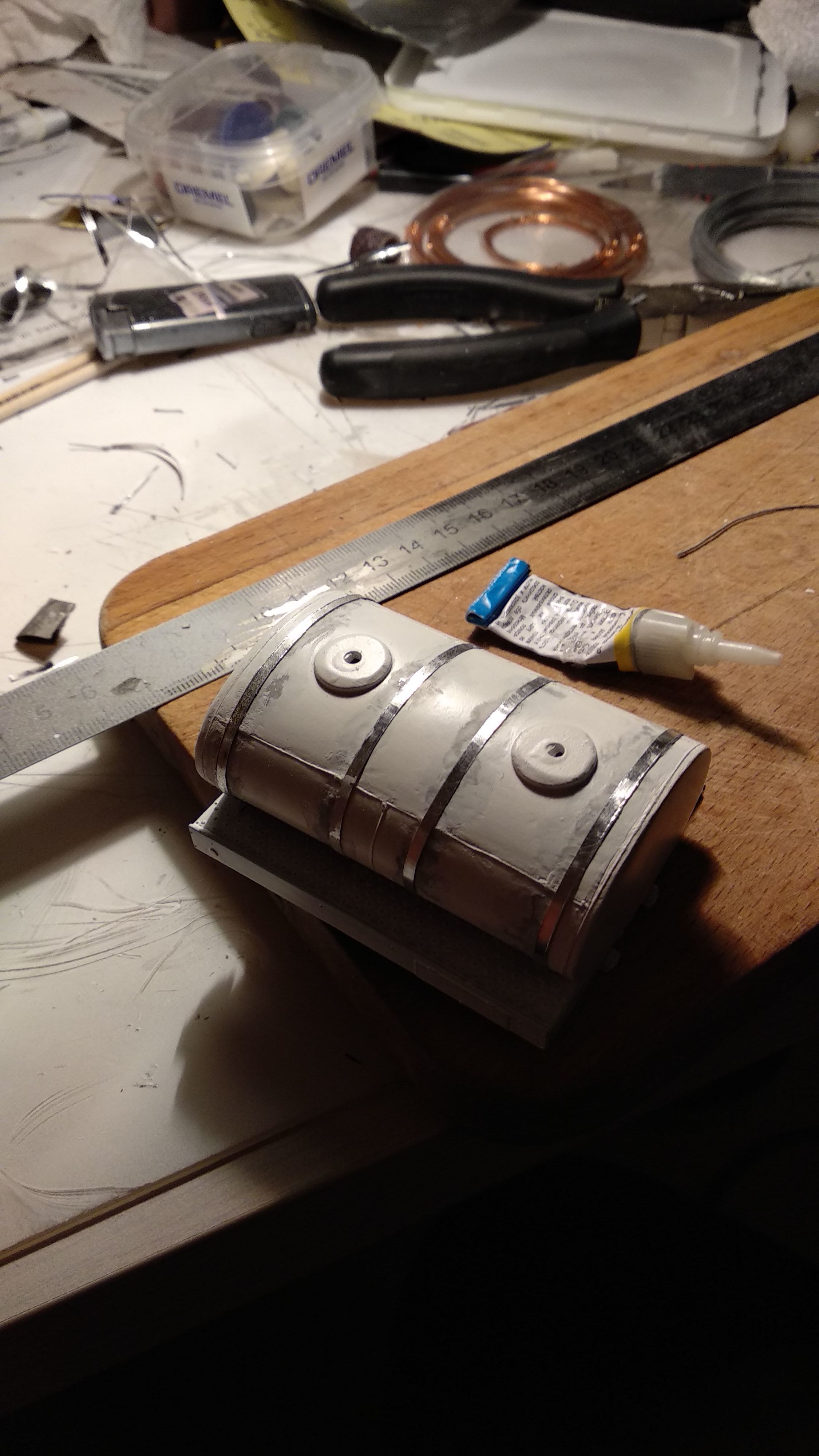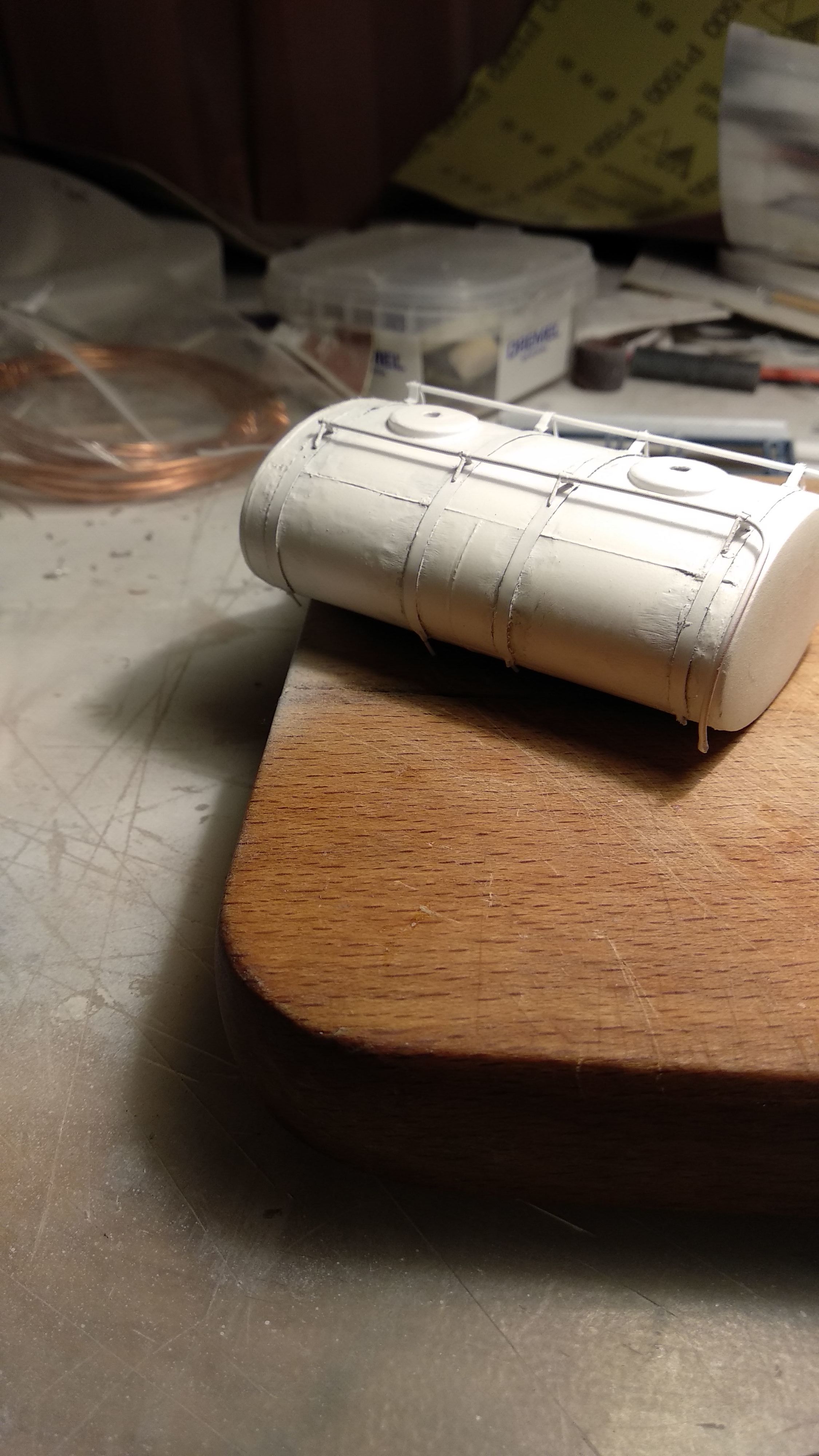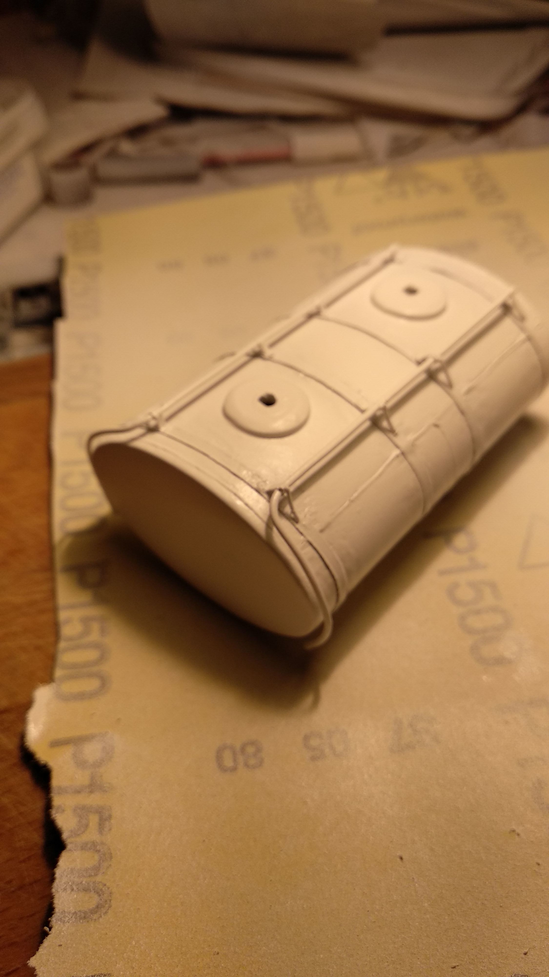 Доделал хомуты, прикинул на цистерну. Подгонка будет уже относительно подмостей. А параллельно с хомутами медитация.... грунтовка и шкурение)