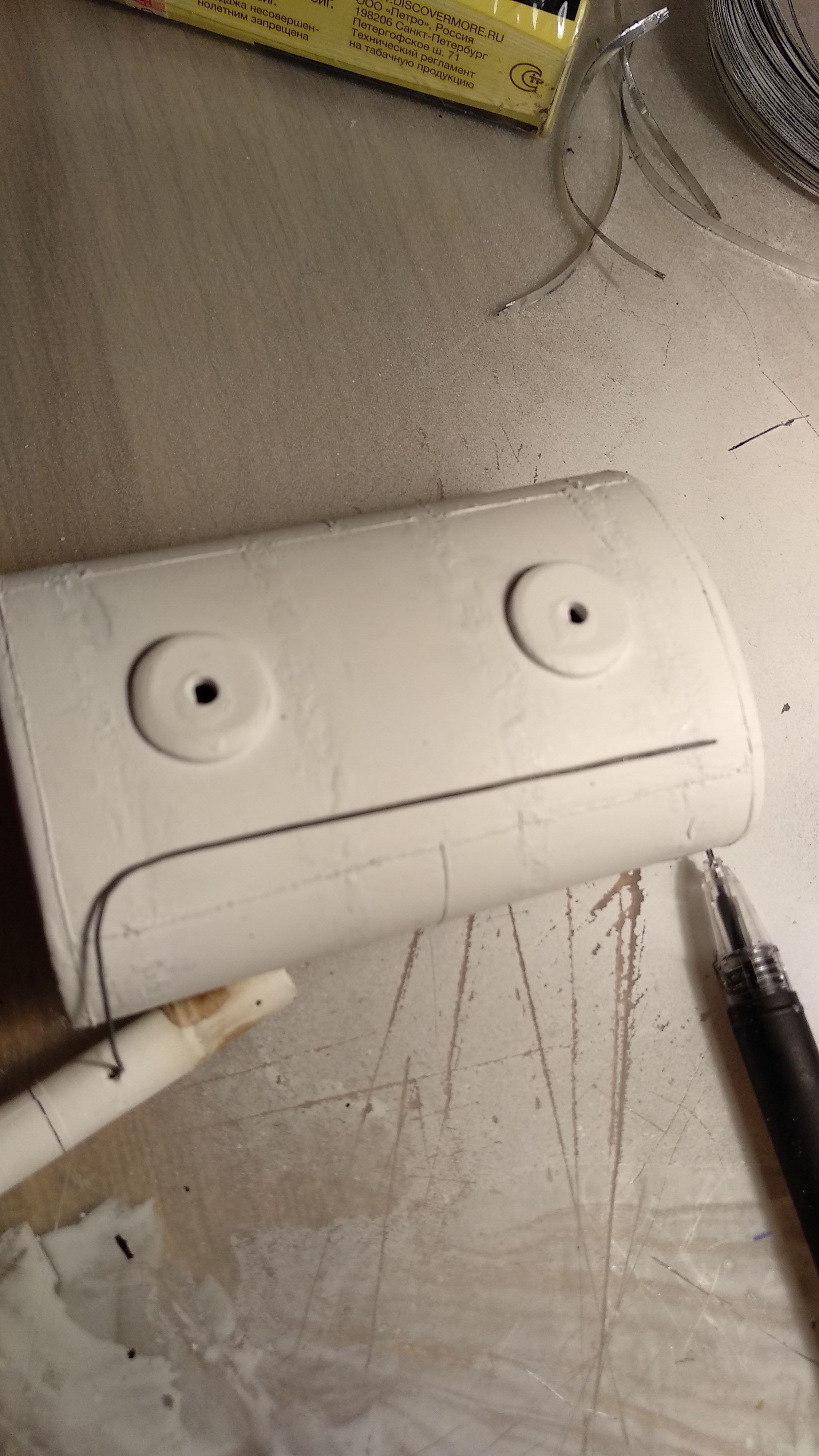 Я так и делал, как вы сказали. Концевики хомута в отверстиях. Суперклей в качестве фиксации натяжки откровенно слаб и совсем не держит. И да, сделал двусоставной хомут с нахлестом.