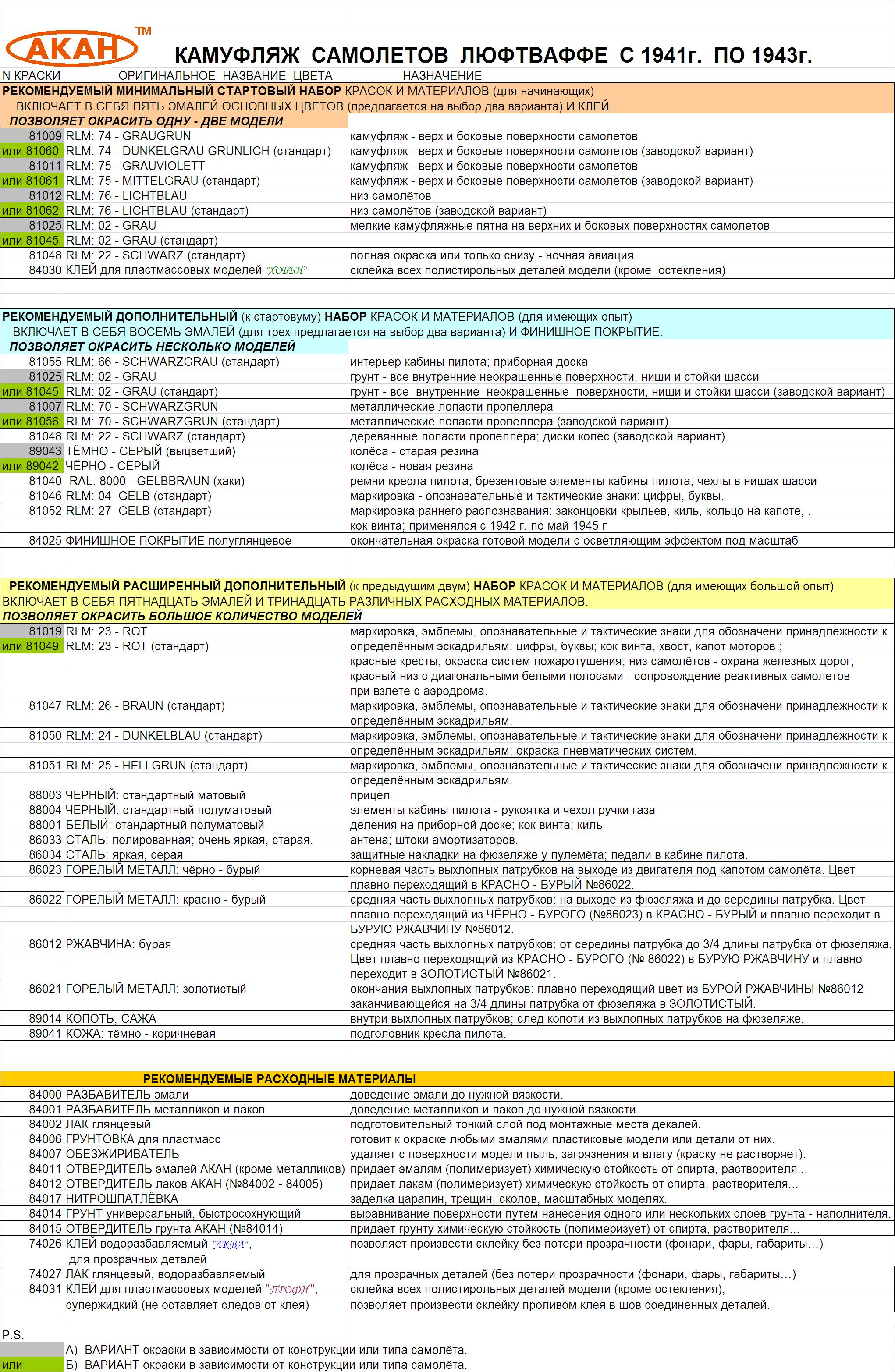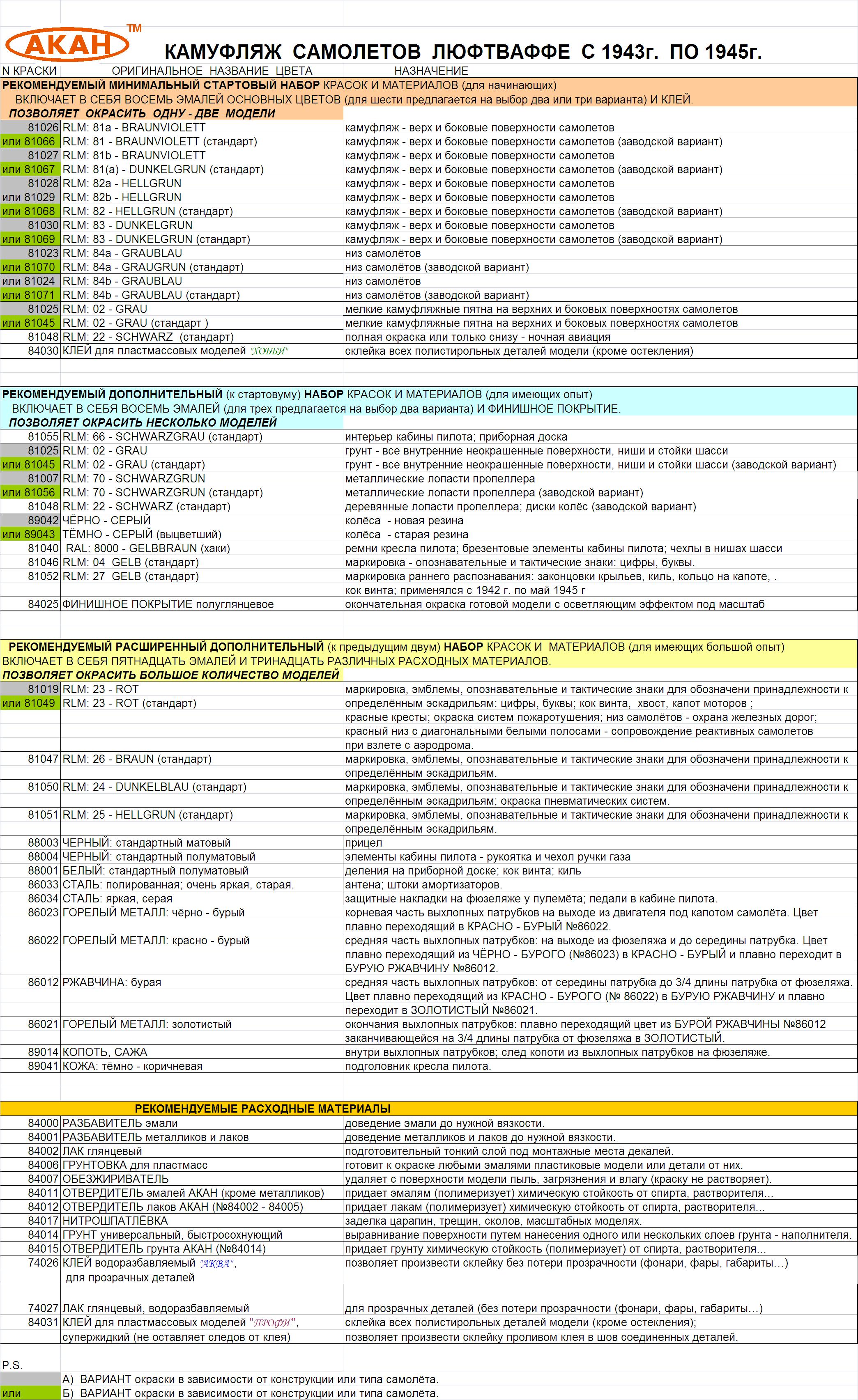 я пользуюсь таблицей соответствия и предпочитаю краски vallejo