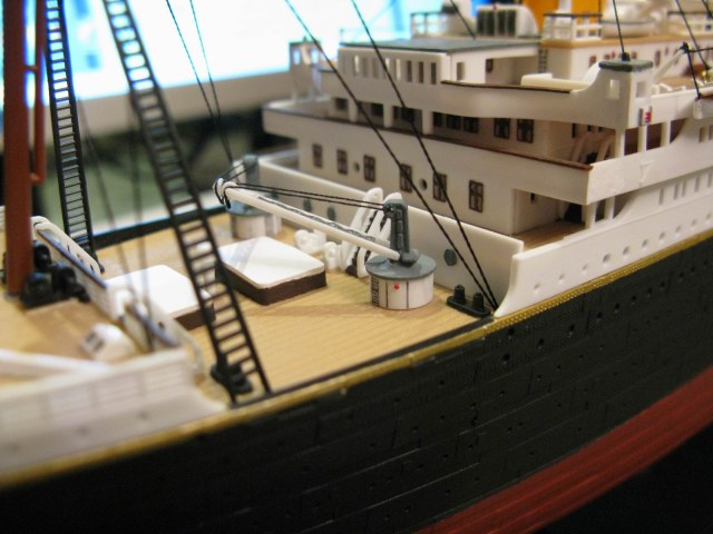 Доброго всем дня ,про момент с такелажем через это и я прошел в итоге срезав его и перетенув заного ,далее леера на помещениях офицеров не имели деревянной накладки ,ограждения с шлюпочной палубы на палубу А были открытыми на всех трех судах не имели козырька не понимаю зачем академия их так сделала , рулевая внутренняя рубка не была у него округлой ,а была прямой ,что это за кольцо на носу где идут растяжки перед якорем ,я на своем академовском пилил много и долго ,щас лежит уже трумпитеровский только в 200 масштабе ,а ну и в случае с трумпитером это исправимо ,а с академией нет центральный винт все таки был трех лопастным (его установили для проверки эфективности но эксперемент кончился неудачно ,в итоге в 1913 году трех лопастной винт поставили на олимпик для продолжения эксперемента ,те фото с винтами в доке это все фото олимпика но никак не титаника ) https://karopka.ru/community/user/23593/?MODEL=501687