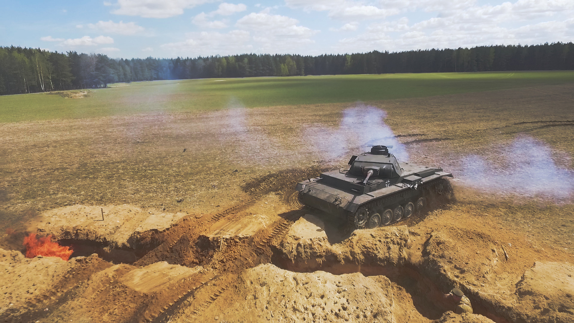 Выкладываем пилотную сцену воздушного боя. Это еще далеко не кино) Можно сказать, проба пера. Когда дойдет до дела ,съемки будут куда интерсней. Камеры будут закреплены на самолетах, для получения эффектных кадров (таких к примеру как тут ,где фоккер делает бочку на фоне облаков).