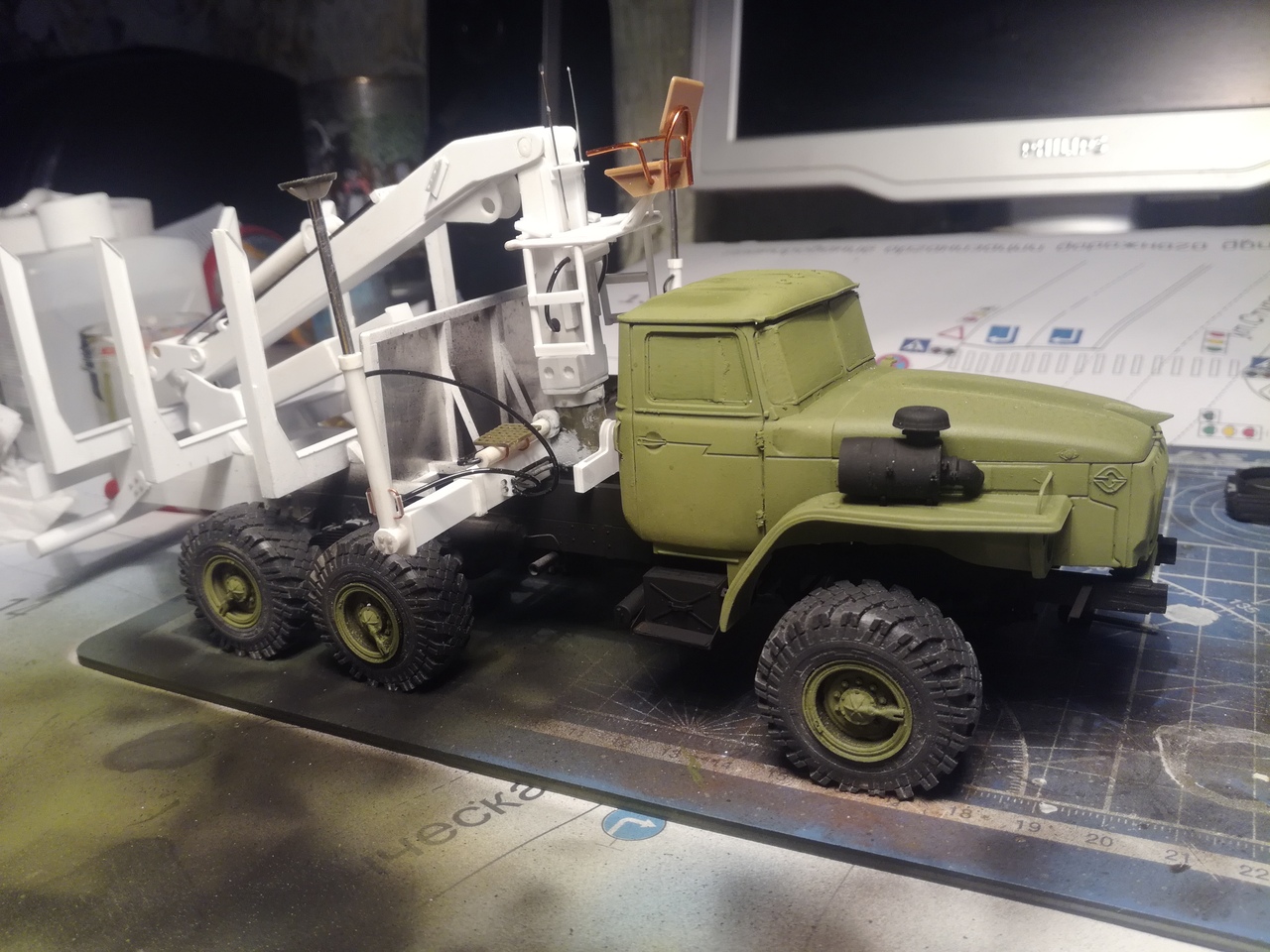 На днях покрасил манипулятор и запачкал грузовик.