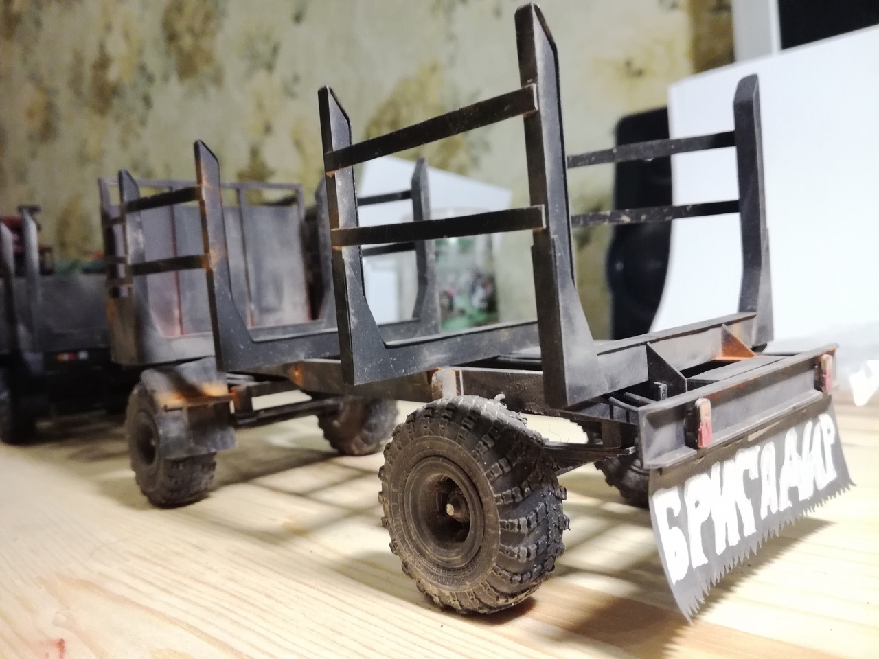Работа проделана большая и качественно!Пара вопросов у меня всё же возникло: для чего сделали такую "гребёнку" под брёвна,аж три пары? Вряд ли на нём будут возить куски по 1,5 метра. И отбойник (причал для ротозеев) сзади,на мой взгляд лишний, по таёжным колеям его оторвёт