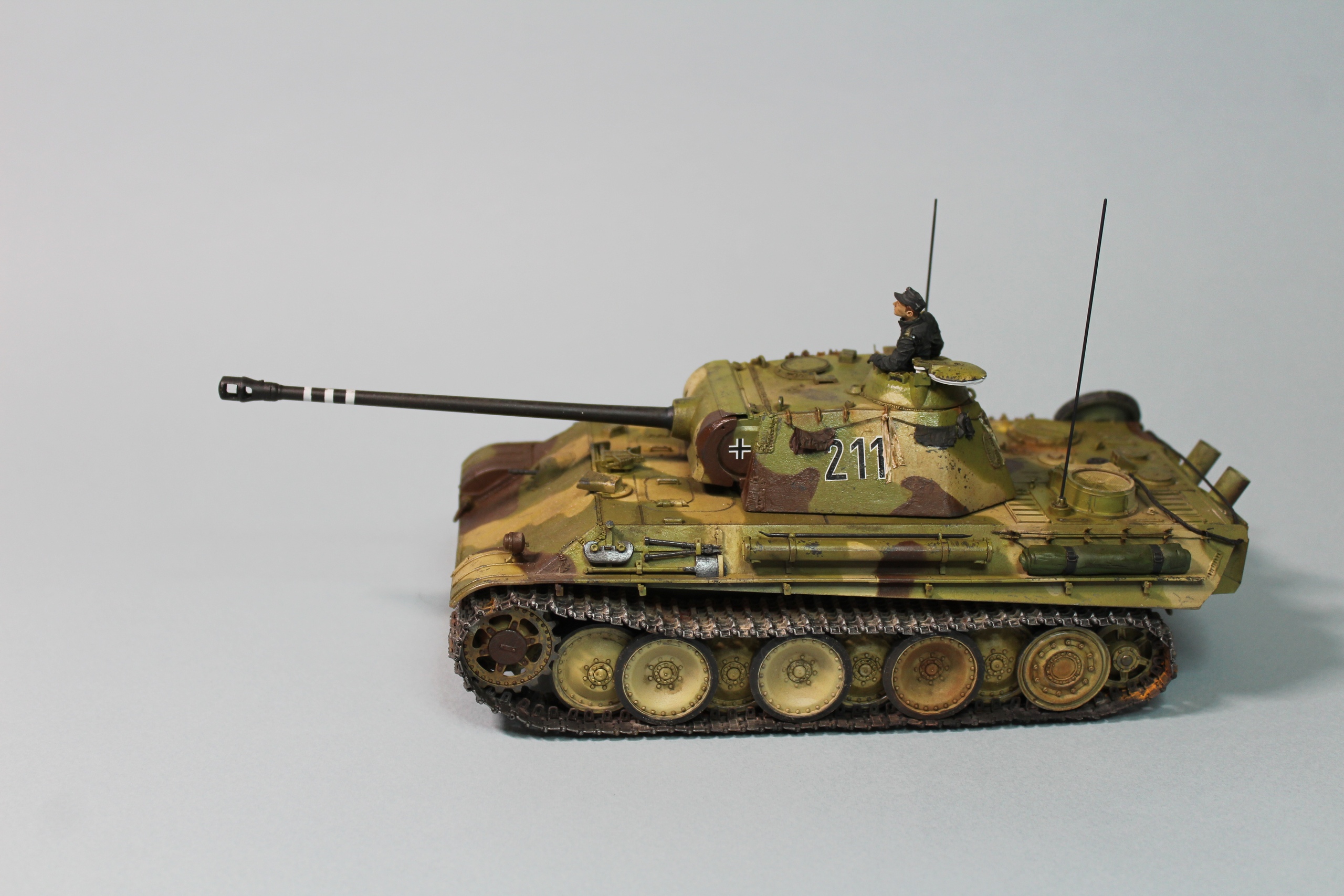 Осталось задуть полуглянцевым лаком. А так пантера от рфм. отсебятина полнейшая, что по матчасти. Так и по камо. Чисто сборка из коробки под модификацию 1945 года и тренировка в нанесении фильтров, смывок и прочего.
