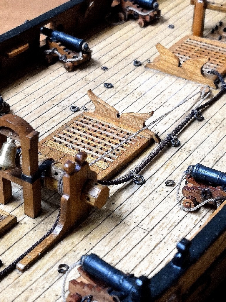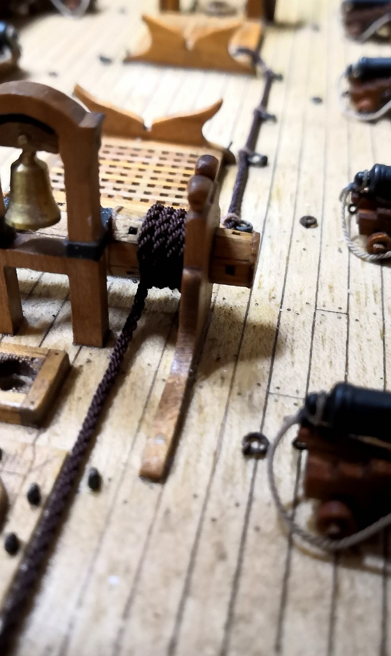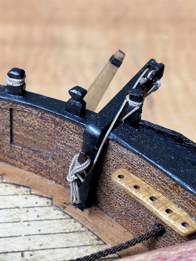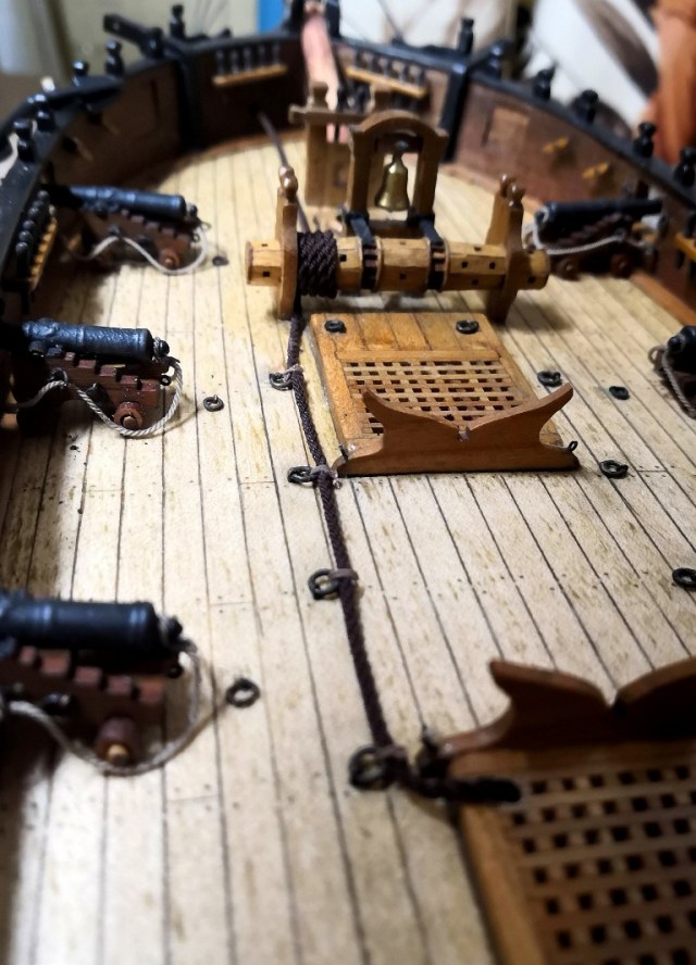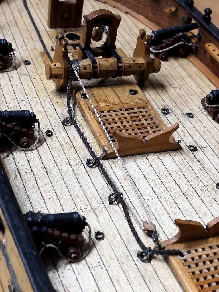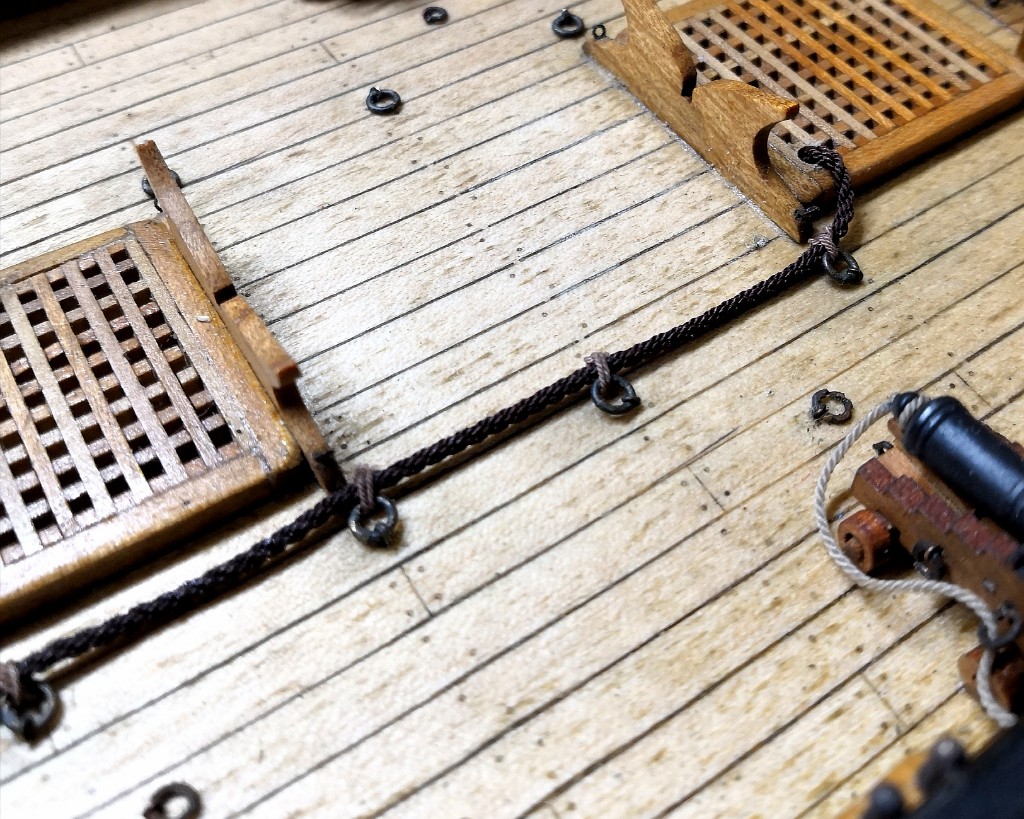 С пушками почти закончил. Осталось ещё две обвязать и на палубе кое-где рымы добавить