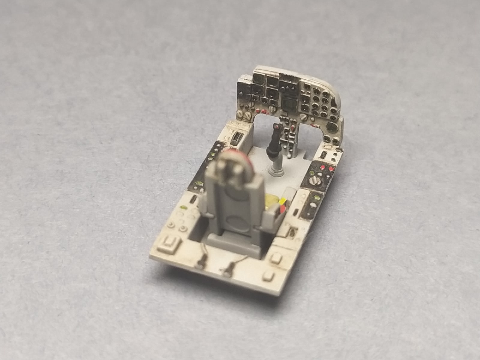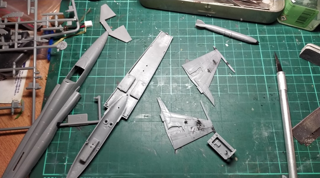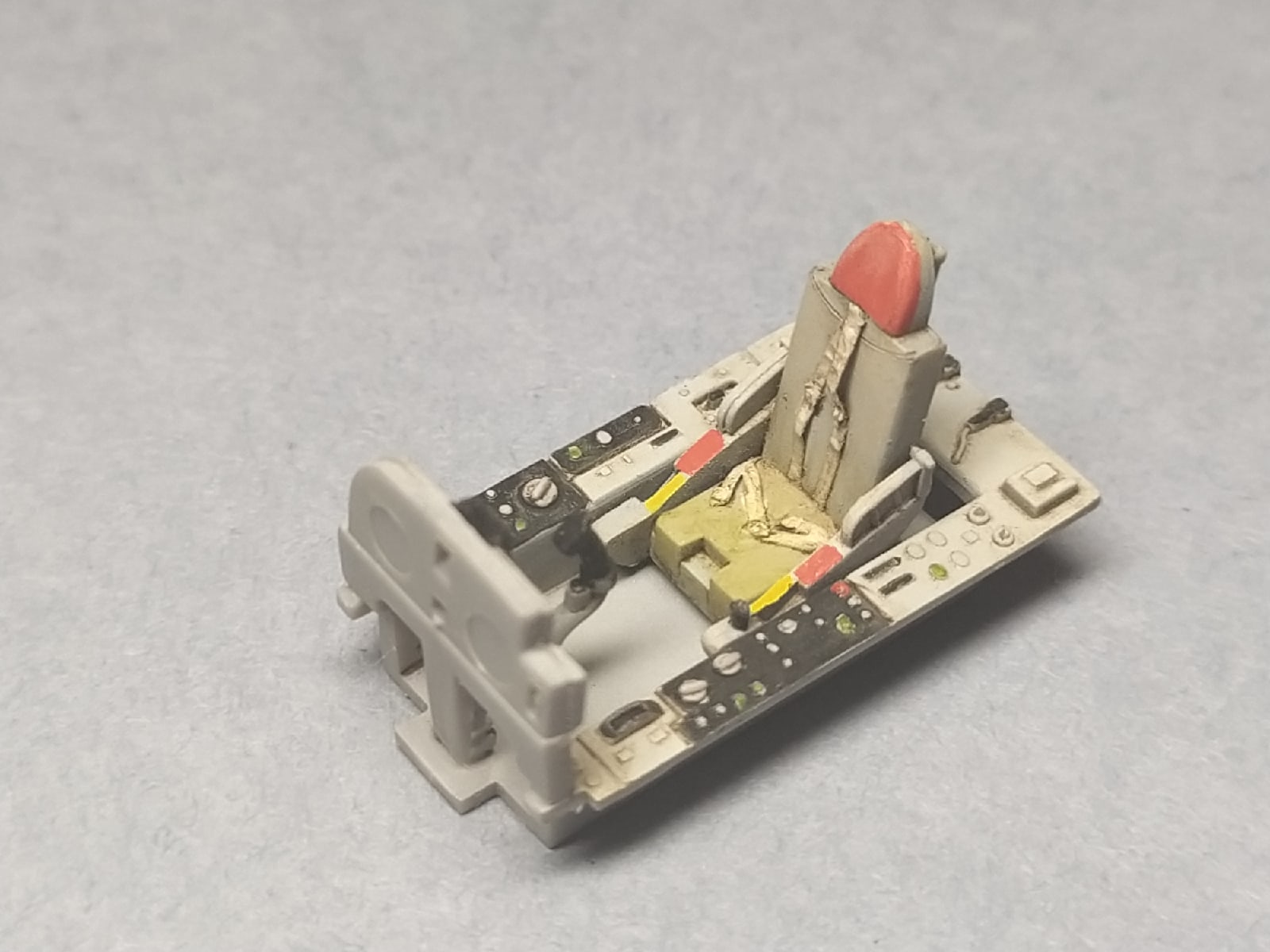 Пока готова кабина (собрана, окрашена, тонирована), зашпаклеваны следы толкателей на крыльях и убраны две точки подвески.