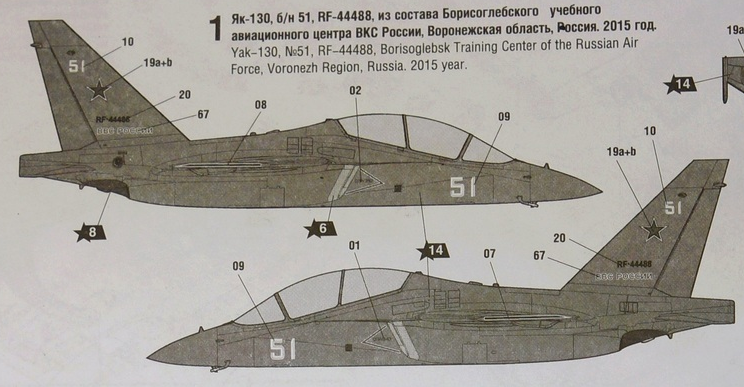 Собираю модель Як-130 от Звезды, выбрал первый вариант одноцветного камуфляжа (Борисоглебский учебный центр). Основной цвет -14 "Темно-серый".