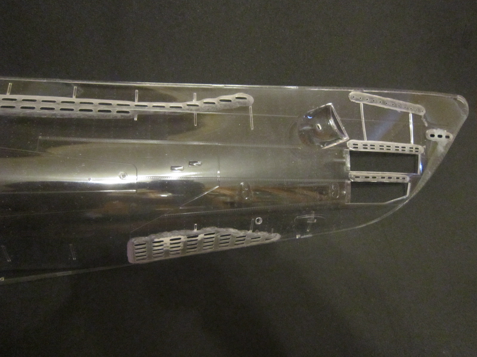 Вобщем полный примитив . Есть вещи от которых я просто в шоке . К примеру прозрачной сделана правая сторона корпуса , а у рубки прозрачная левая половинка ! Ну как !!!???