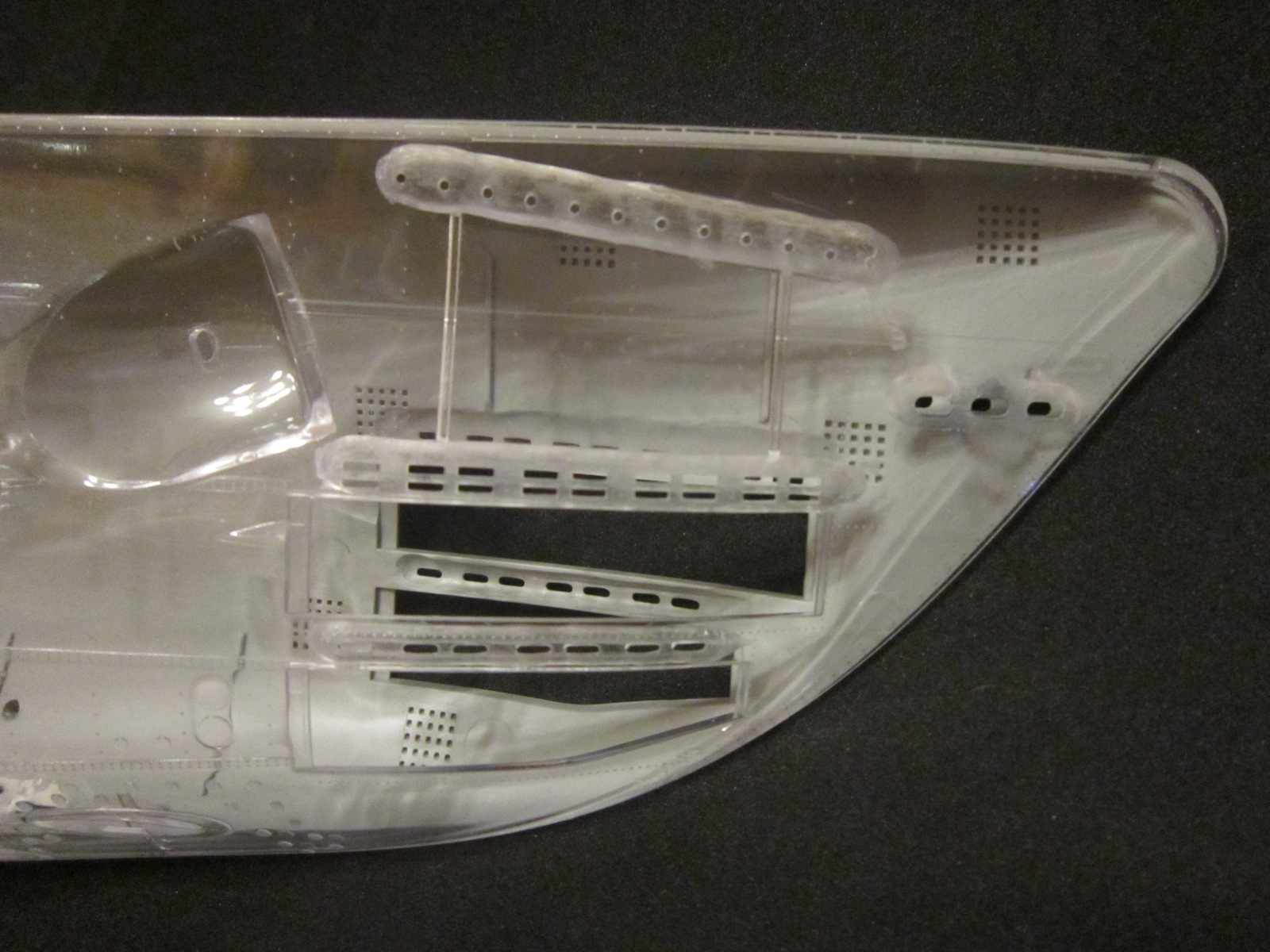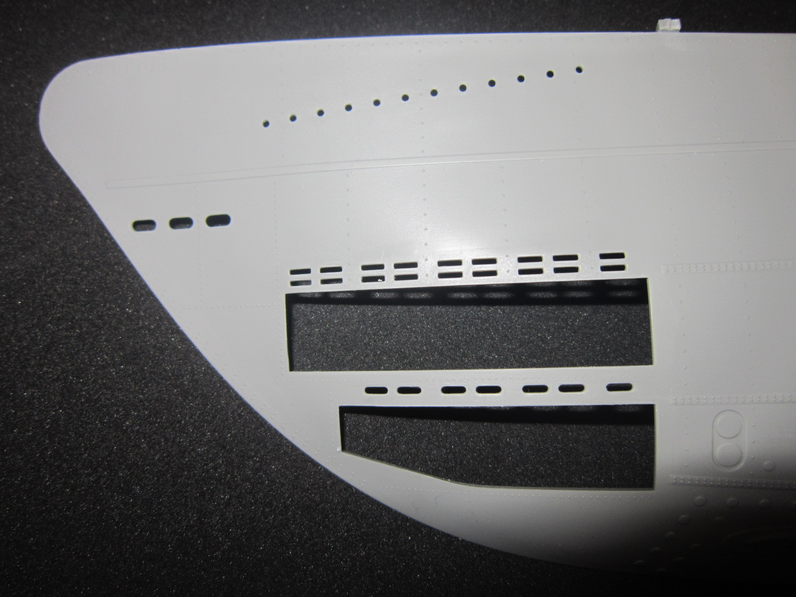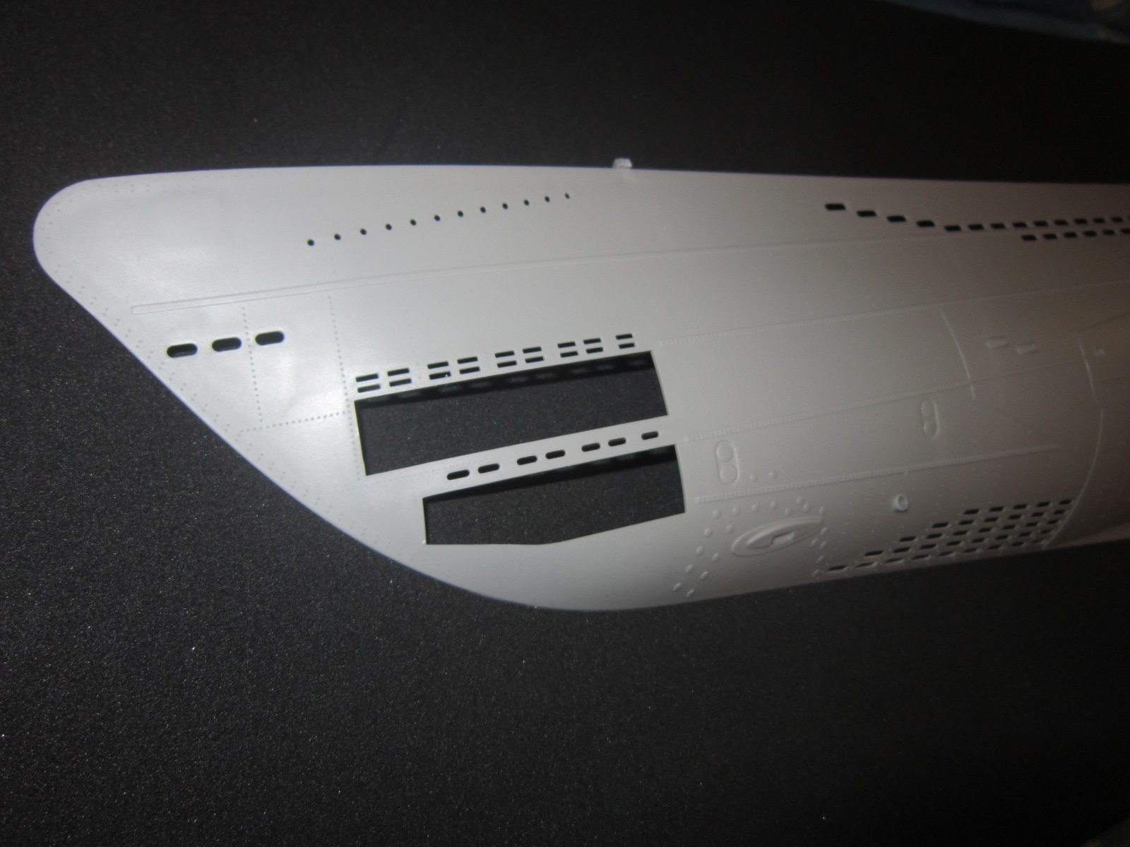 А вот общие впечатления о модели напишу . Те ещё дрова . Интерьер сделан очень не плохо , не идеально , есть несколько откровенных провалов , но лучше на рынке просто нет . Но есть ощущение что на всё остальное разработчиков просто не хватило . Для такого масштаба , по корабельным меркам просто огромного 1/48, детализация экстерьера очень слабая . К примеру , все отверстия на корпусе глухие , всё надо прорезать , люки корпуса отлиты вместе с корпусом , просто 1 куском . Все лючки , решётки тоже просто отлиты на корпусе , нет кучи разной корпусной мелочёвки и т.д .