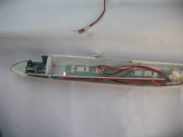 Да,Миша,крыло с БАНО и фарами изготовлено .Провода спаяны. Теперь дело за процессором для мигания маяков.И еще хотелось бы подсветку салона-белый,пилотской кабины-красным.