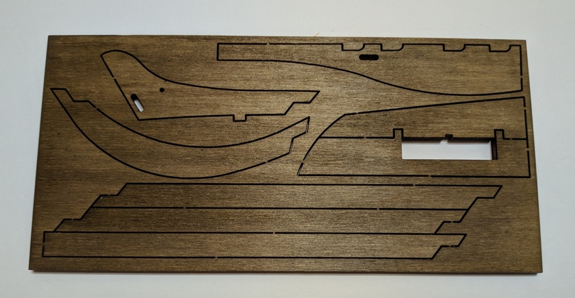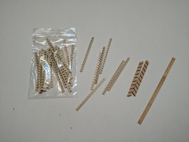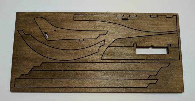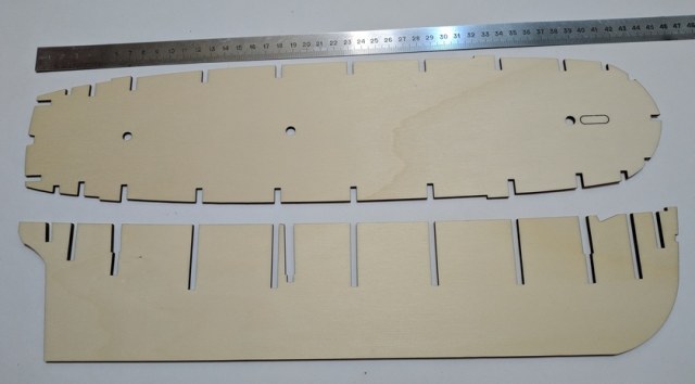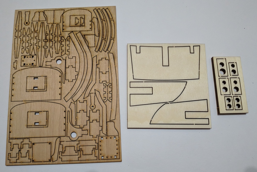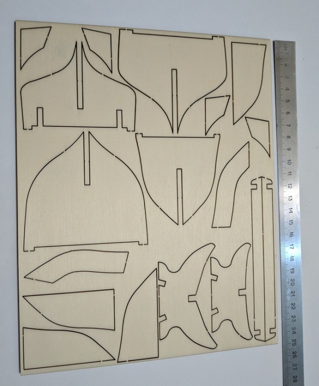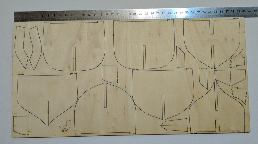 Собственно килевая рамка, палуба и плашки с вырезанными шпангоутами, деталями силового набора и элементами.