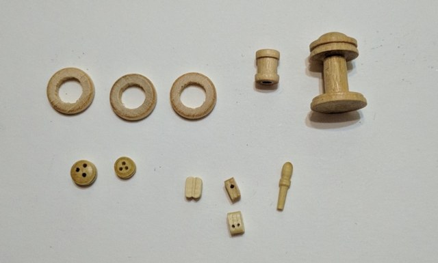 Заготовки шпиля, юферсы, блоки (все таки надо менять и добавлять размеры), нагели, типа брюканцы