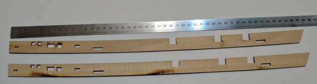Детали киля, форштевня, ахтерштевня и руля. Все из 4мм фанеры и соответственно буду менять.