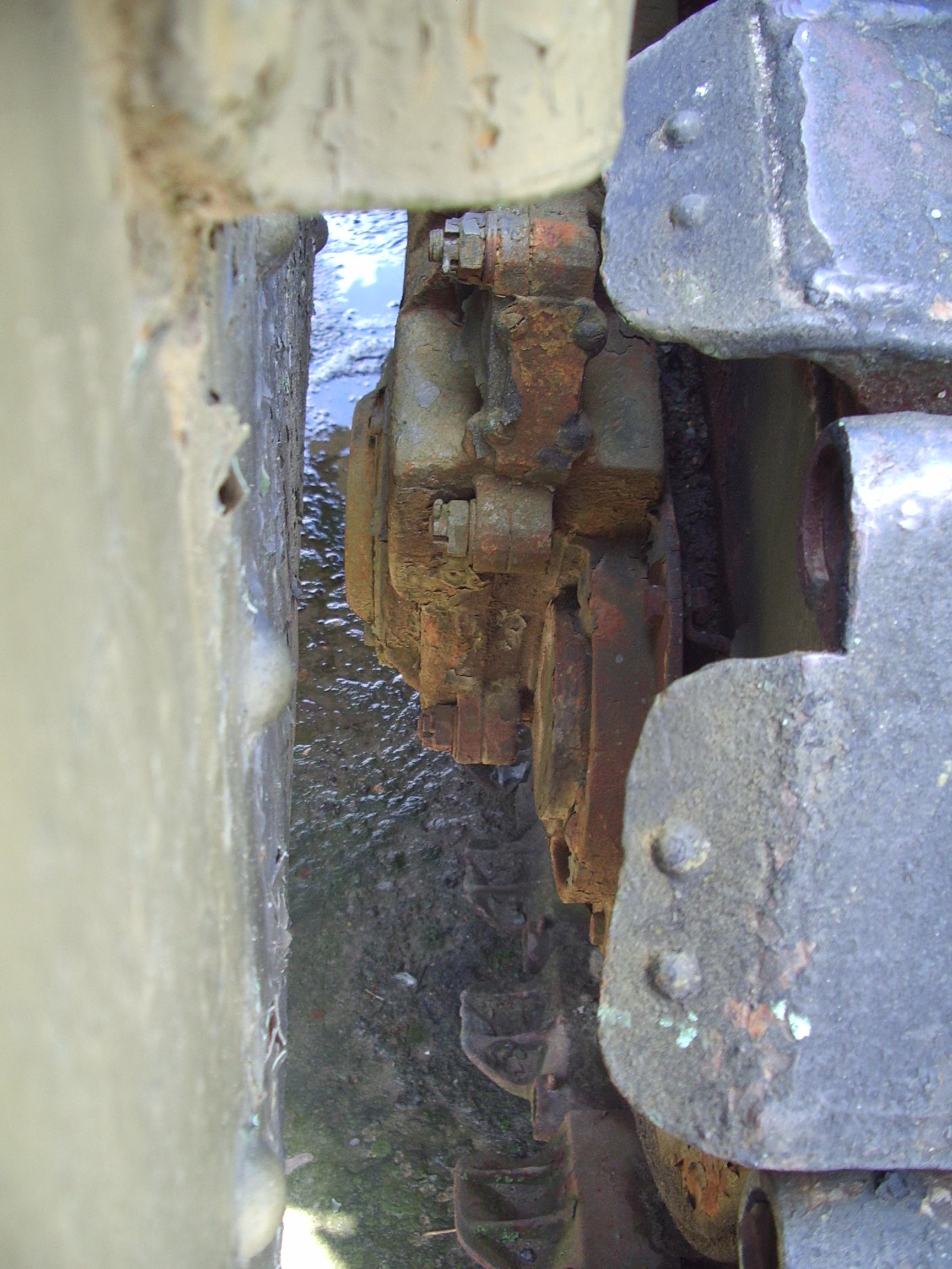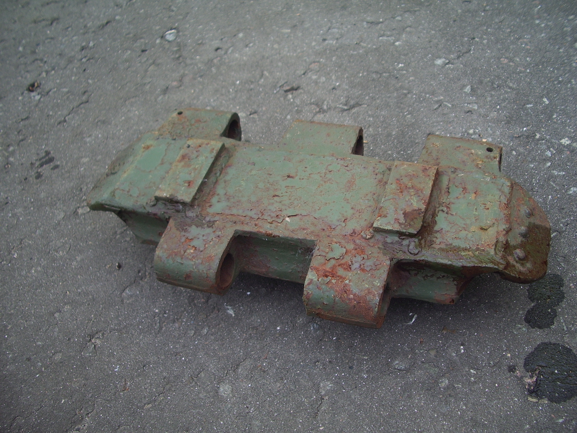 И вот если посмотреть на заюзанные траки без шпор на 3-м фото, то приваренный лист как раз под действием веса орудия продавливался о грунт во внутрь трака огибая внутренние ребра трака. Этот верхний лист просто закрывает отверстия в траке, и не является усилительной пластиной, усиливающим элементом как раз являются шпоры привариваемые над ребрами трака.