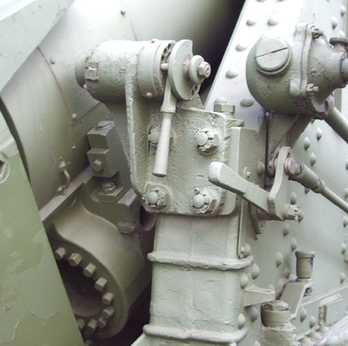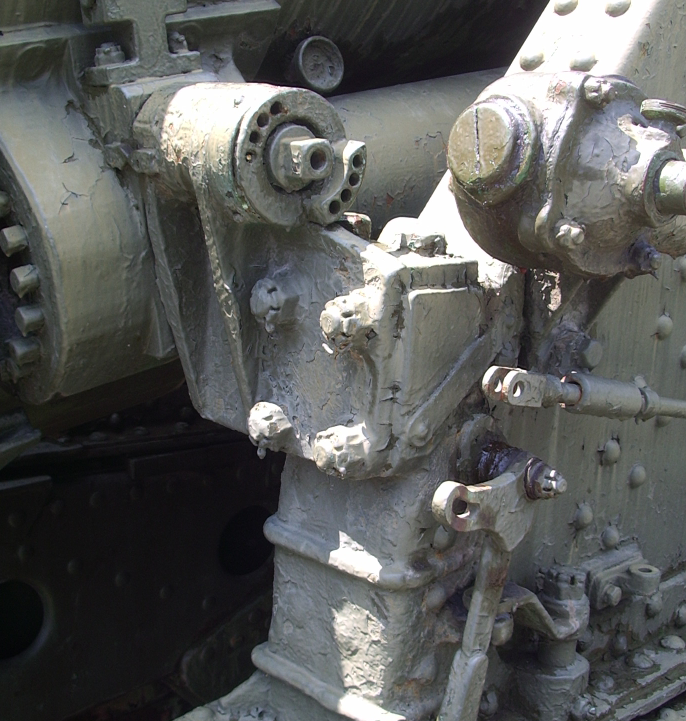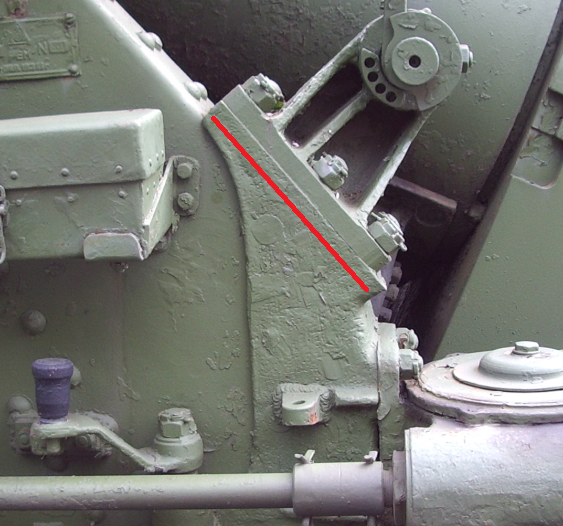 Сектор люльки на орудиях первой серии был литой, позже он делался из дух деталей сваркой и состоял из основания и обода сектора. Сектор собранный на болтах есть на орудии стоящем в Переслав-Хмельницкий, больше вроде бы не попадался.