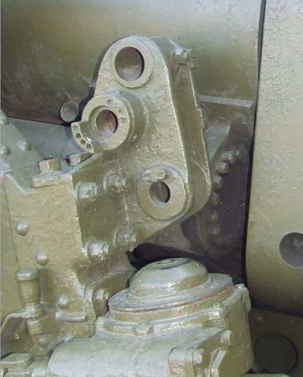 Проушина на люльке применяемая с приспособлением для сборки орудия ставилась на ровную поверхность, а не цилиндрическую. Также проушина имела две "щечки", а не одну.
