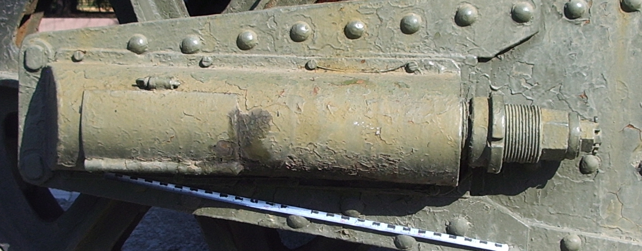 Места крепления шанцевого инструмента на станинах я прорабатывал по фотографиям 5-ти разных орудий. Поэтому в их копийности на модели уверен. Мест для крепления кувалды не нашел ни на одном.