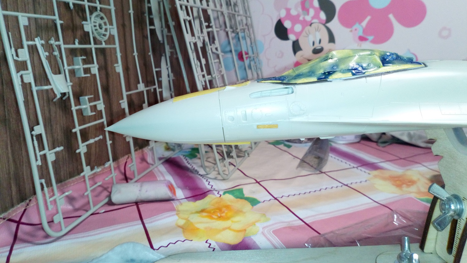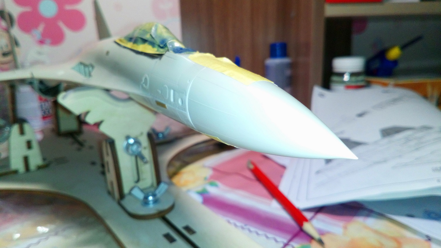 Носовой обтекатель тоже сколько ни примерял вчера, сверху и снизу ложится заподлицо, с боков получились ступеньки, на фото видно.