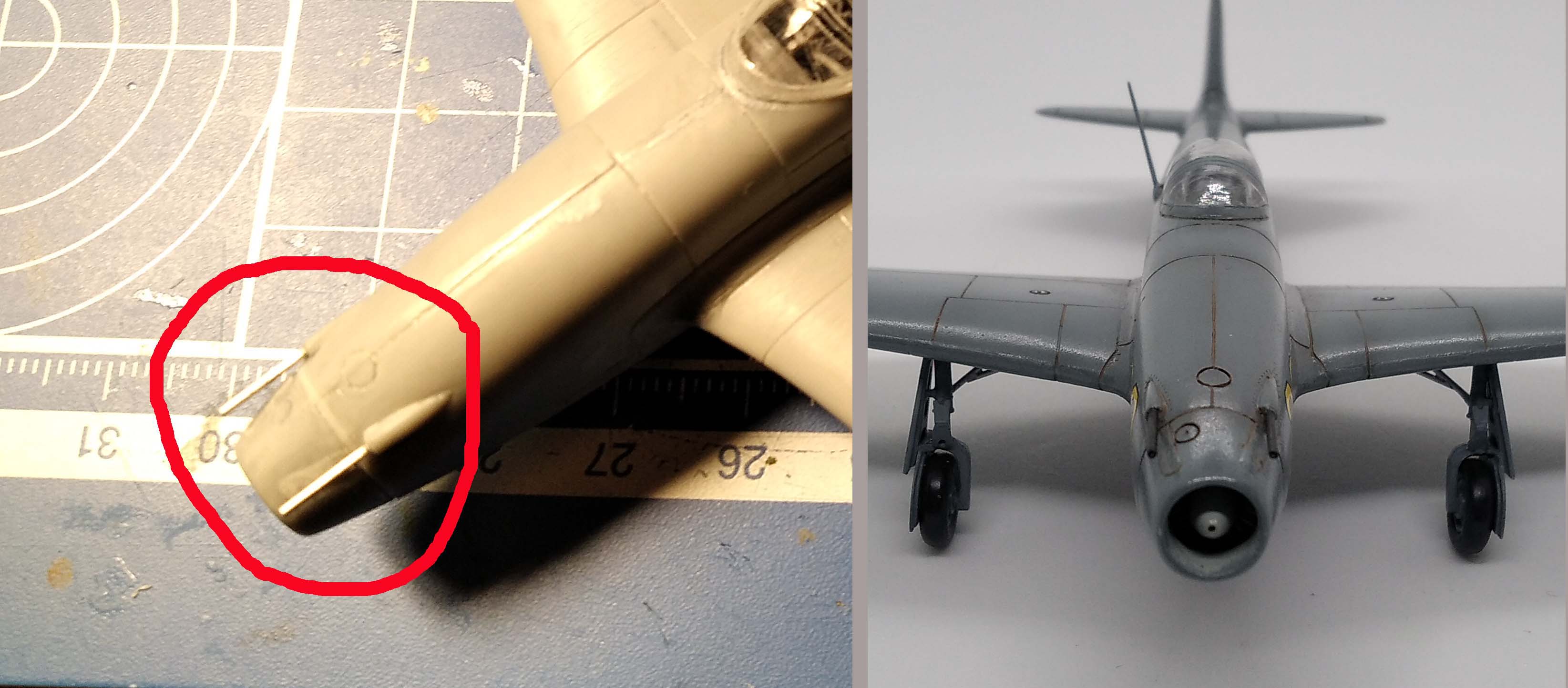 Интересно, а совок водорадиатора такой-же как и на модели Як-9Д в 1/72? Т.е. с гранями? По фото не ясно.