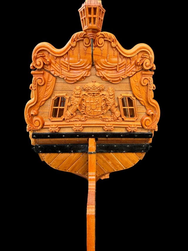Решил немного отвлечься от корпуса. Собрал с декором окно кормовой каюты. Пока только примерка.