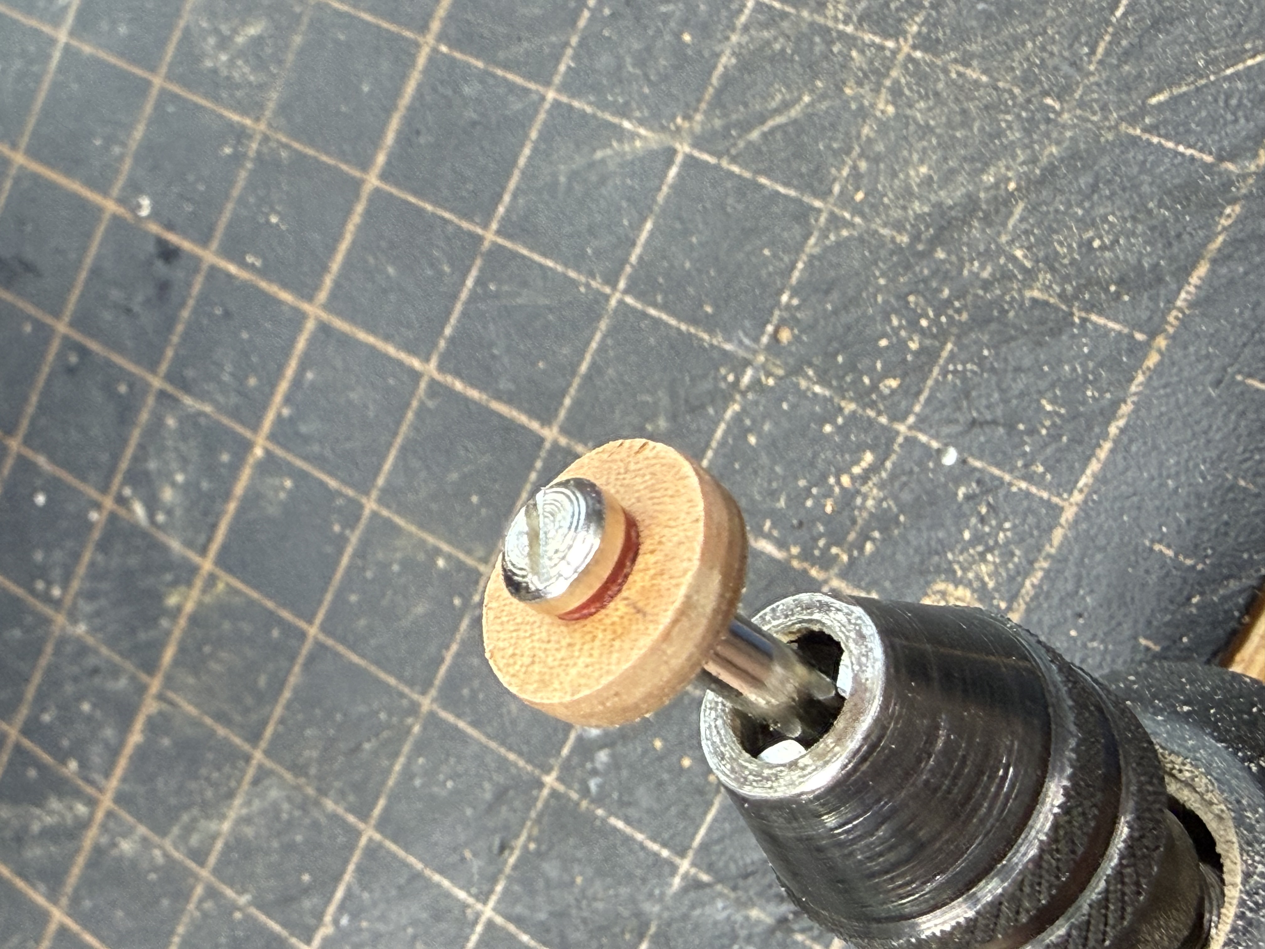 Вбил гвозди. Снизу вверх от круглой до квадратной шляпки. Мне кажется круглая смотрится более органично. Черная квадратная шляпка на черном фоне теряется.