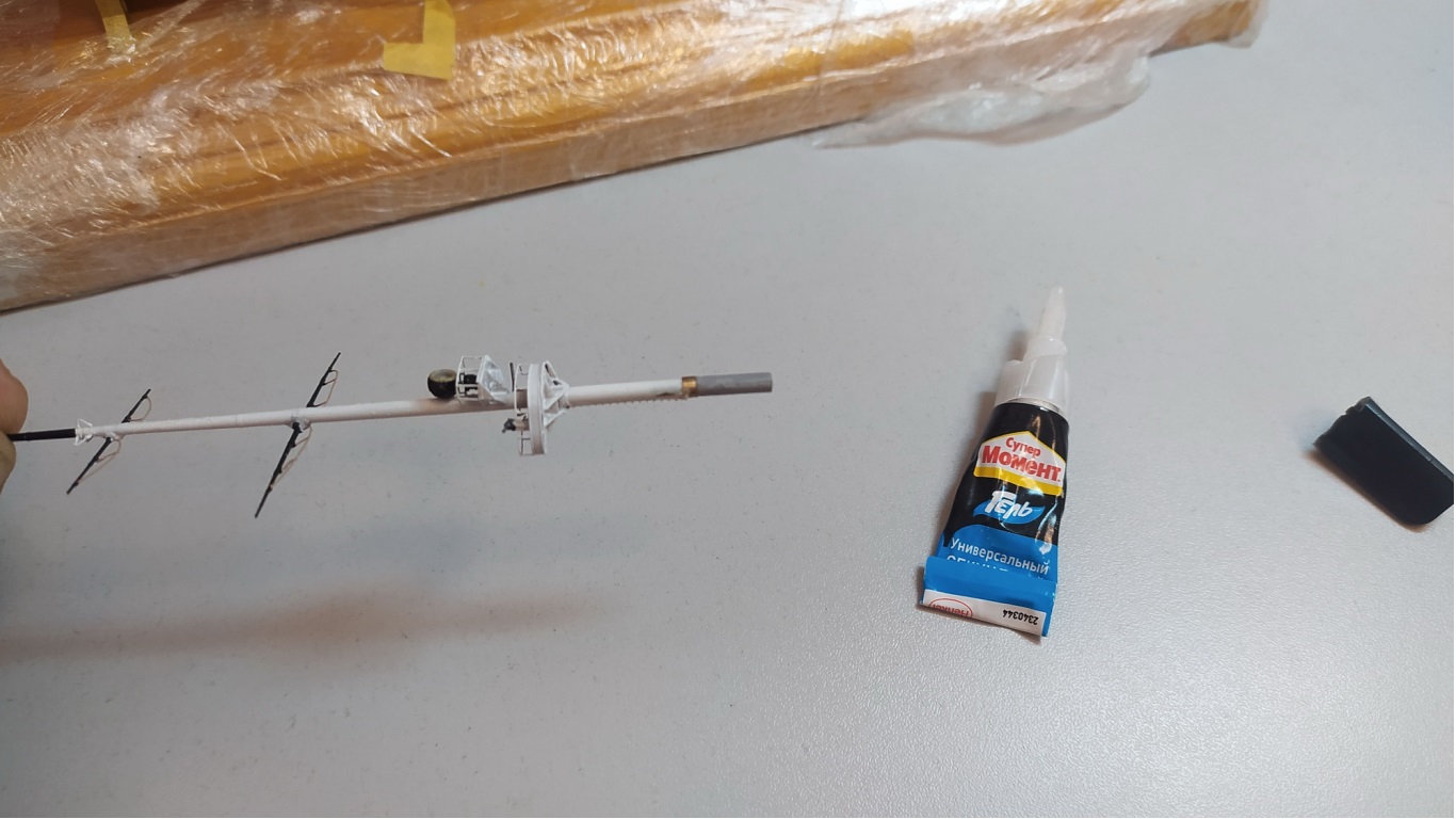 Также чтобы установить вторую мачту пришлось её немного нарастить, чтобы она соответствовала по высоте с оригинальными мачтами на Варяге. В общем немного нарастив её палочкой от литника, я наконец то установил её на место.