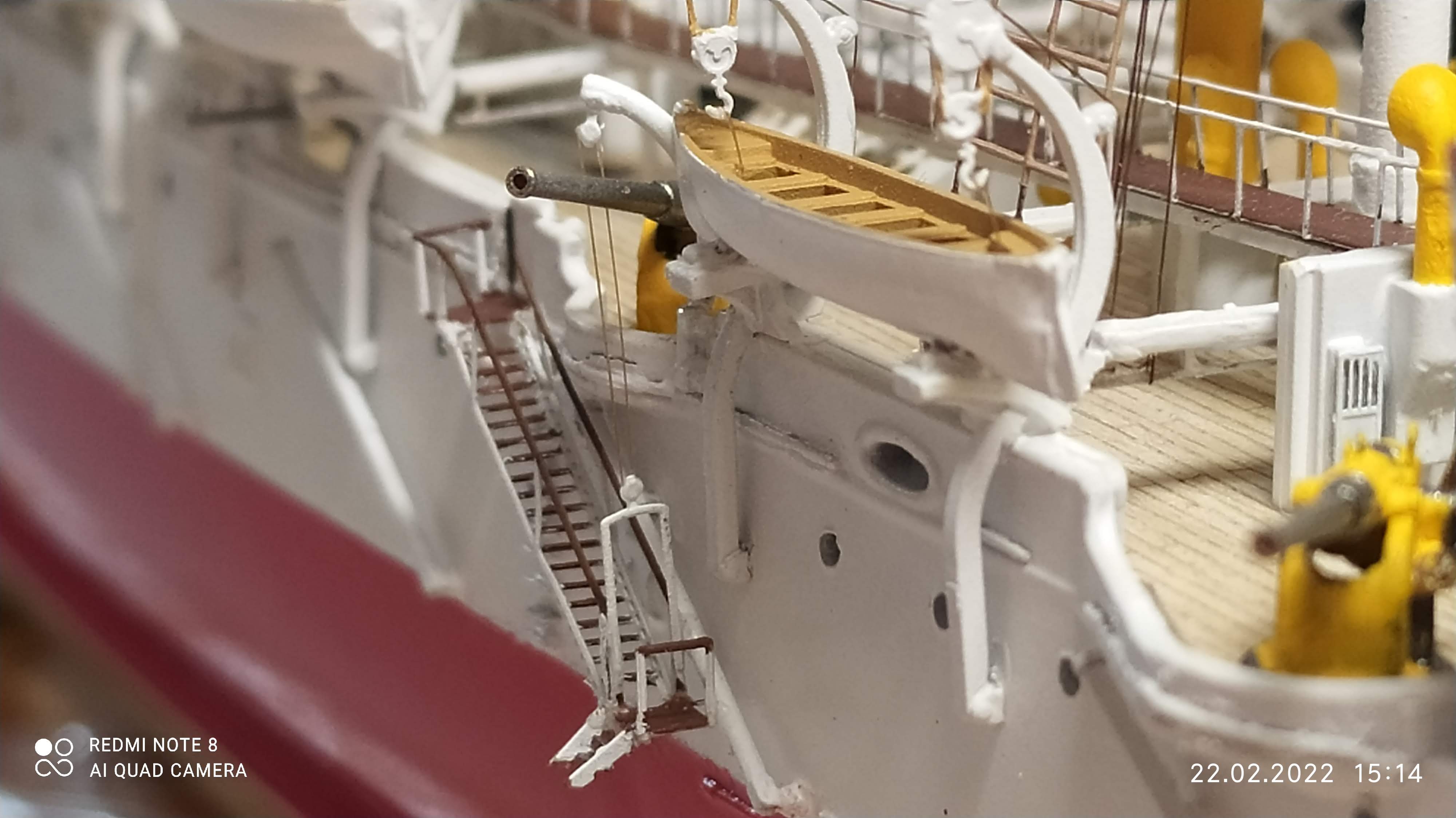 Краткий конспект по последним работам. В общем продолжил я стройку, установил все шлюпбалки и оставшиеся 4 лодки и ещё вентиляторы коечных сеток, под последними лодками. Там конечно пришлось повозиться, были проблемы с пропорциями Звезды, пришлось наращивать борт и в месте установки подгонять.